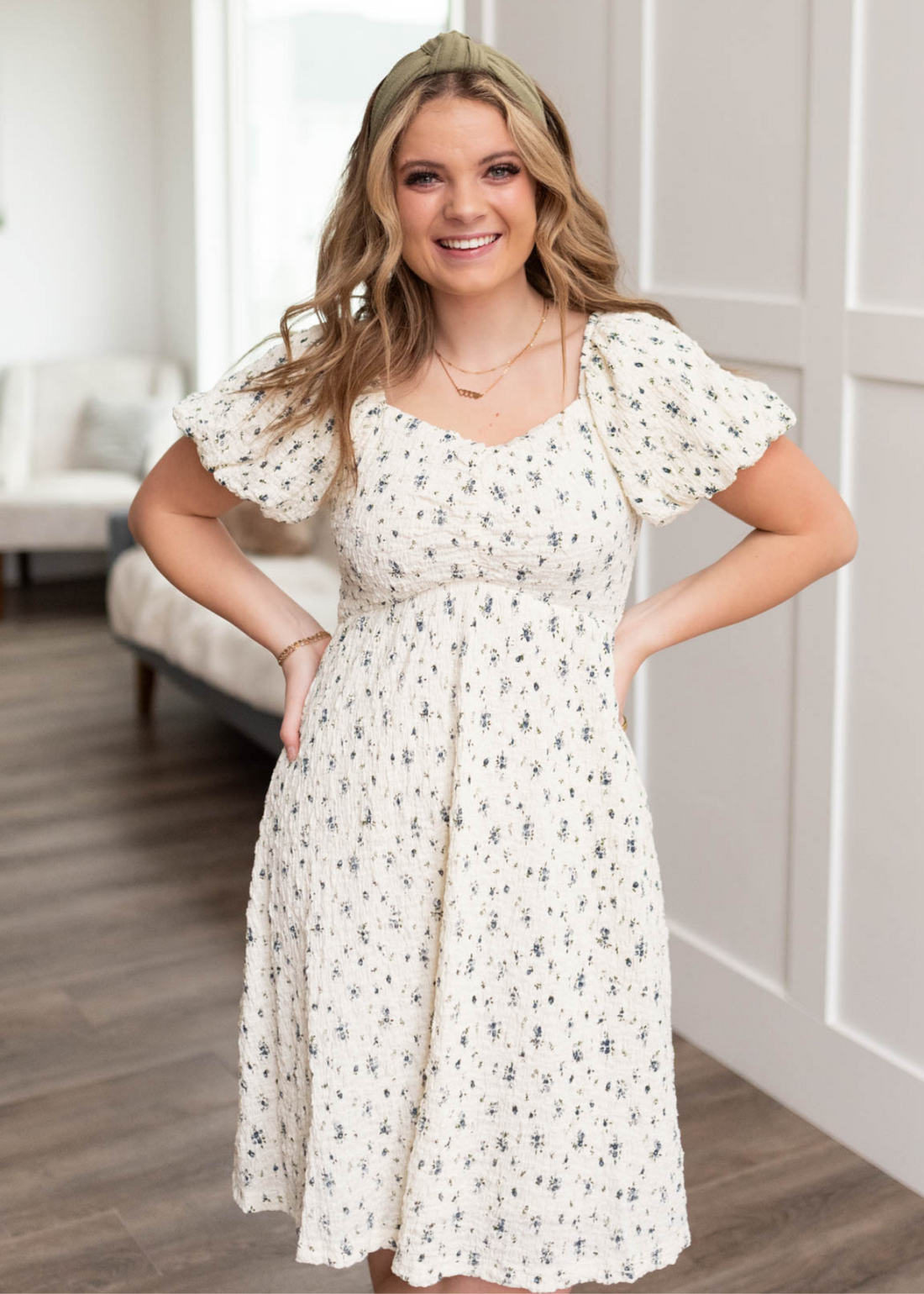 Irene Cream Floral Pattern Dress
