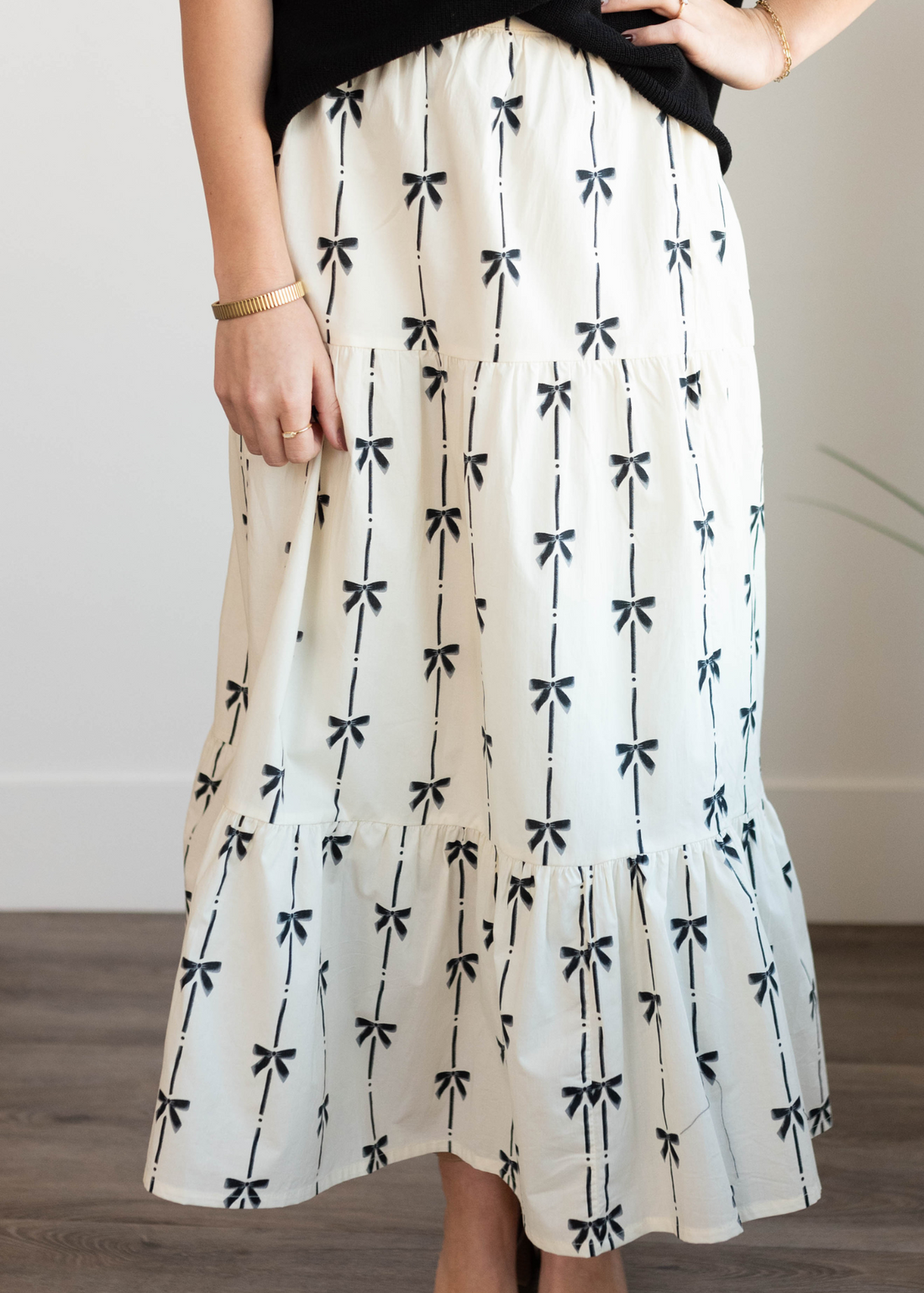 Isabel Black Bow Printed Skirt