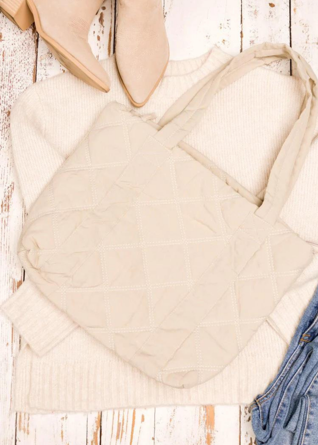 Blithe Beige Quilted Tote