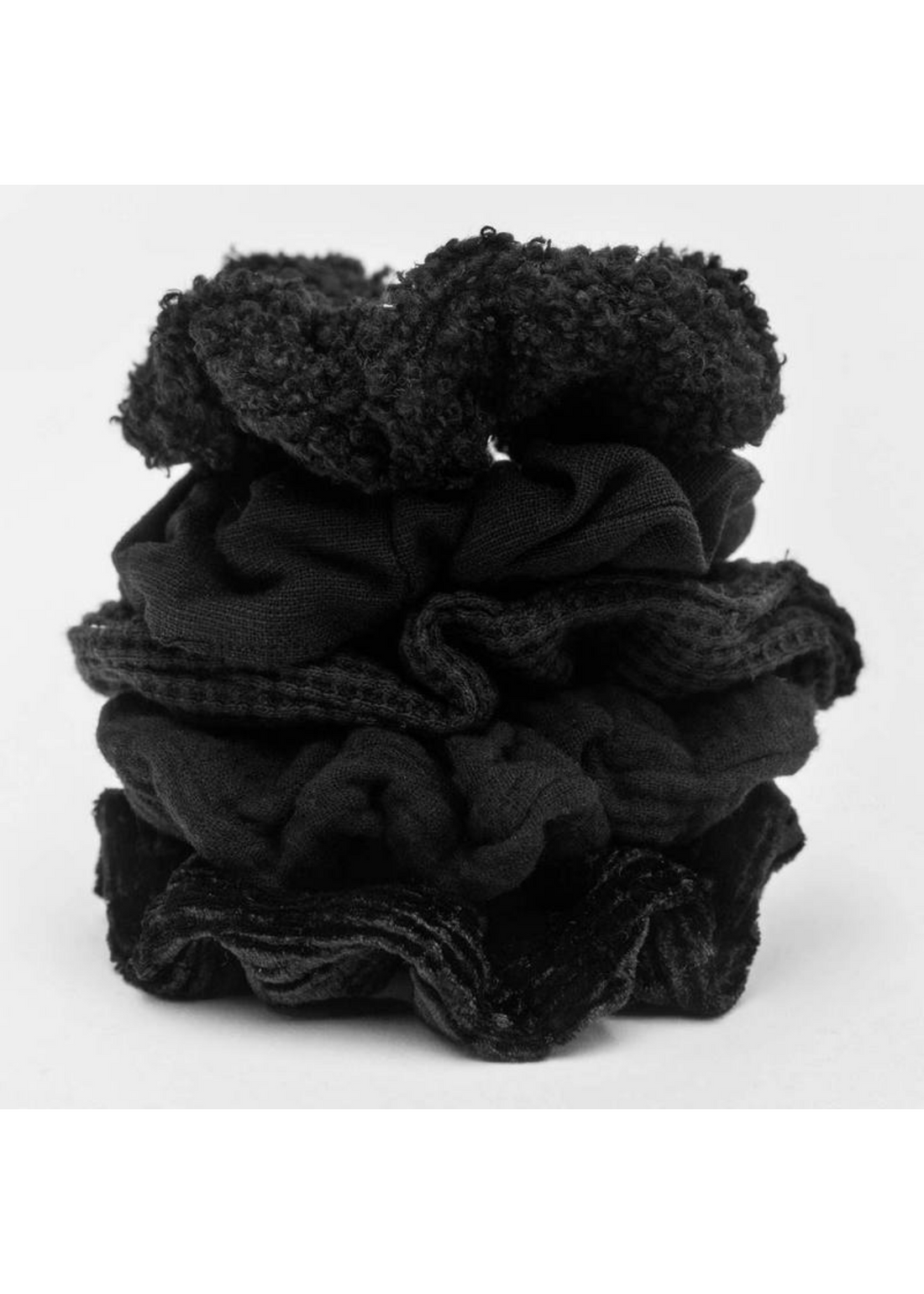 Black Assorted Textured Scrunchies 5-Pack