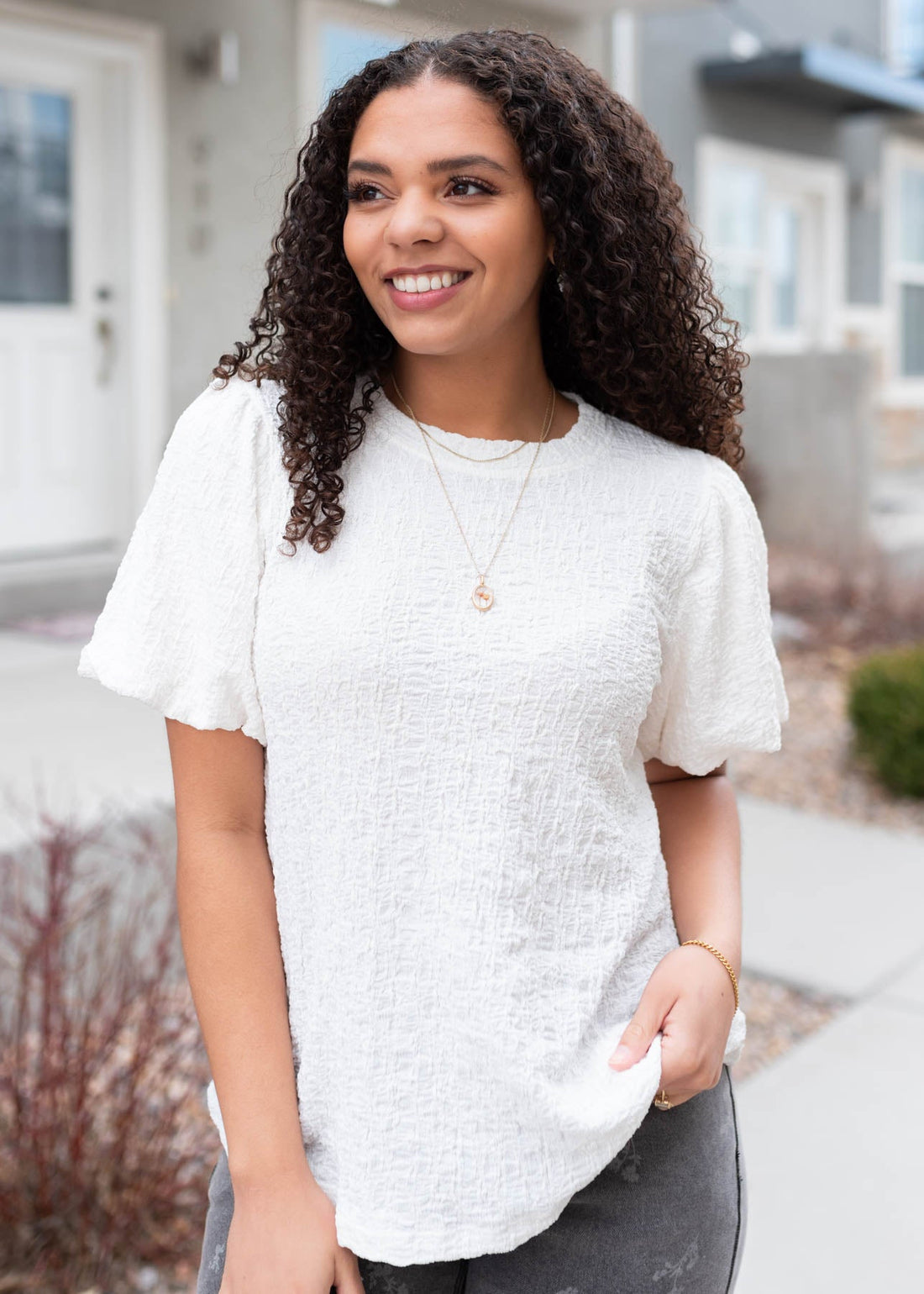 Sariah White Textured Top