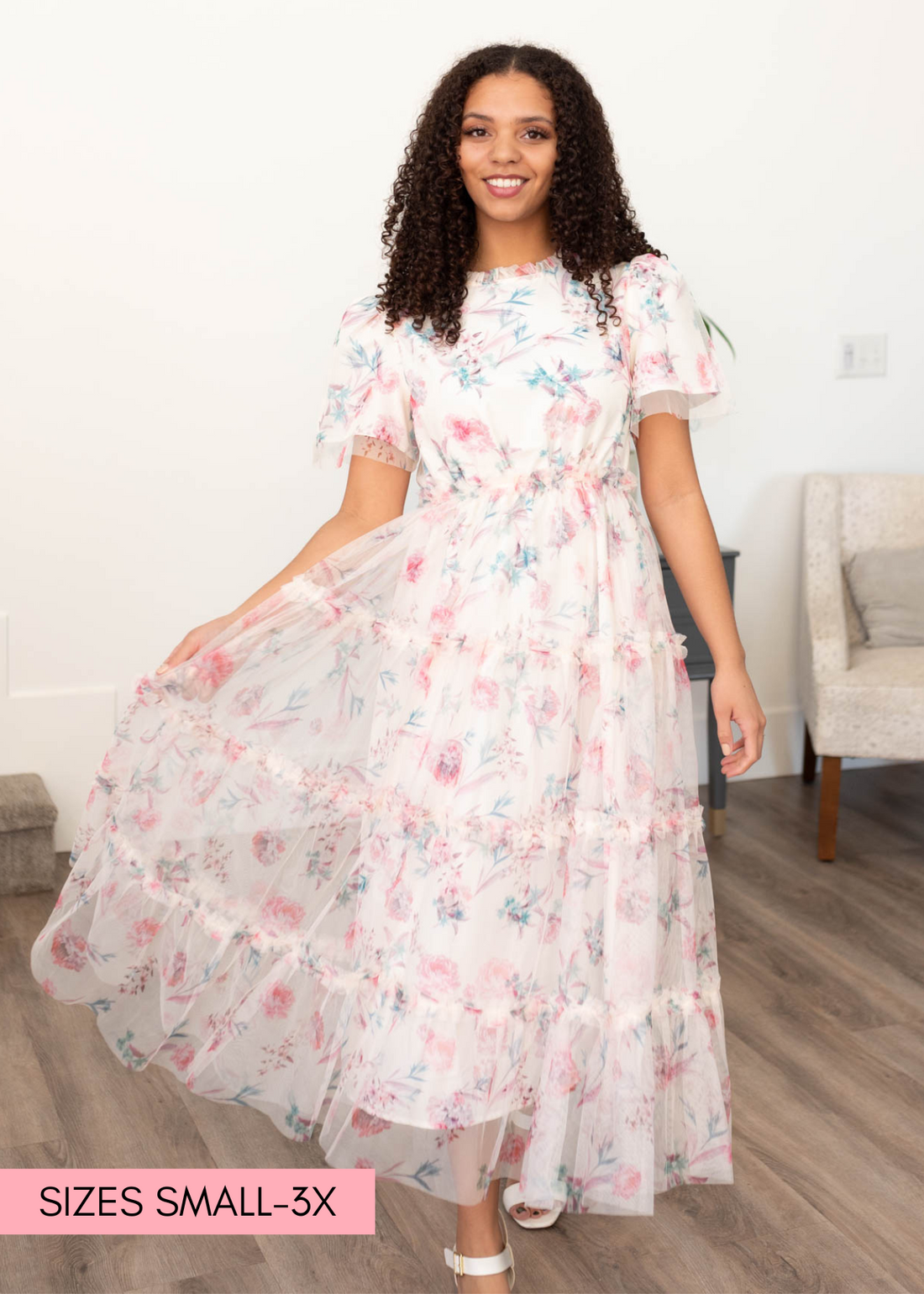 Mira Blush Rose Tiered Ruffle Little Girl Dress