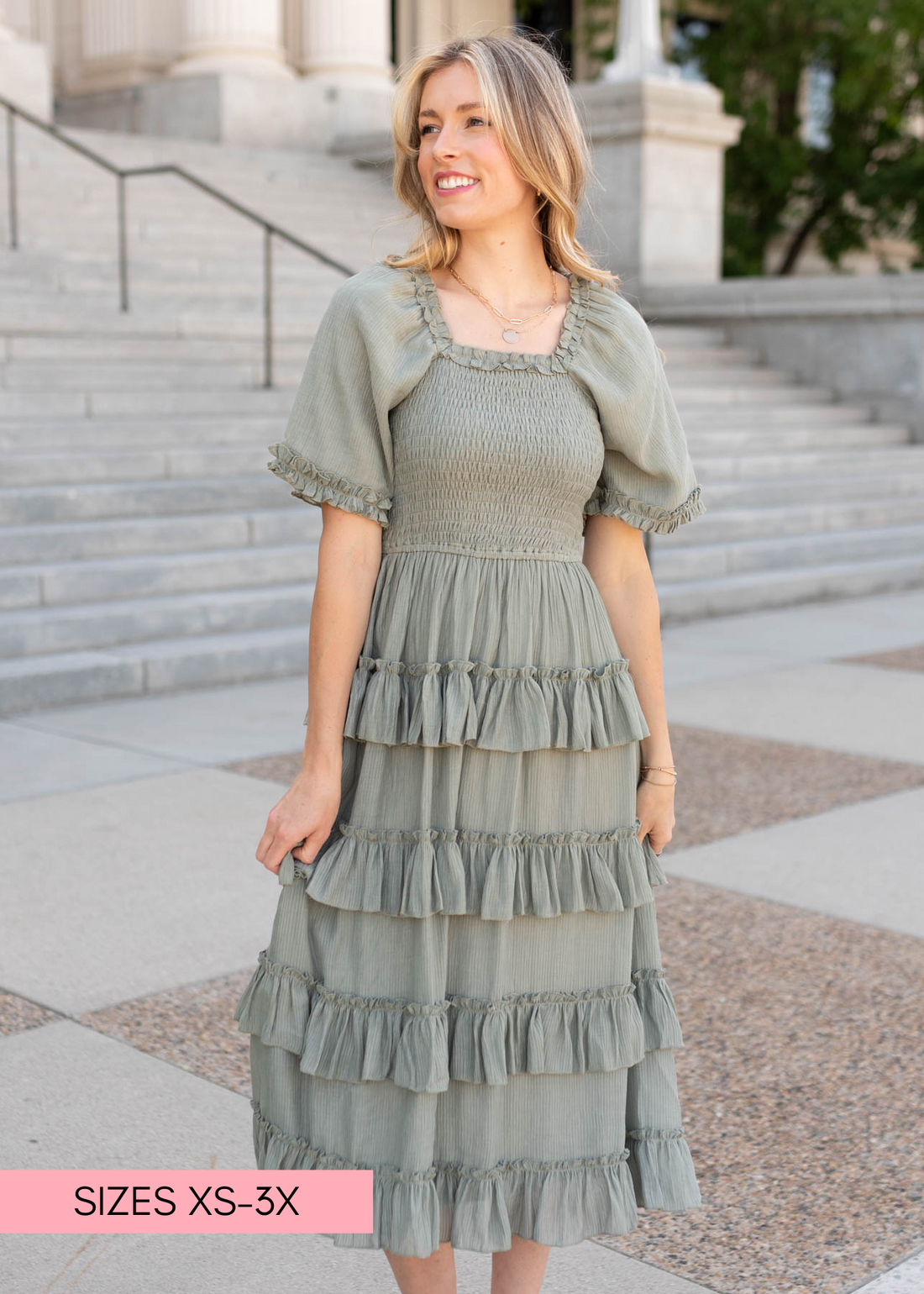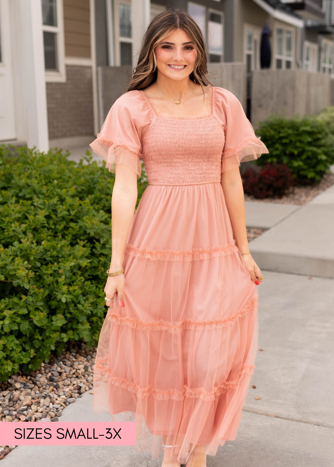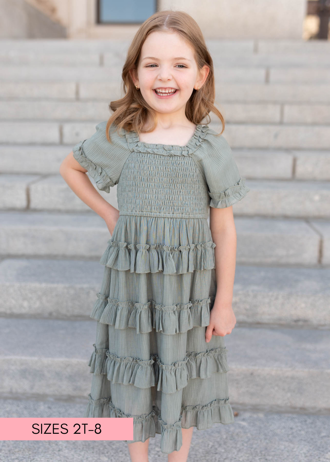 Korin Dusty Rose Ruffle Tiered Little Girl Dress