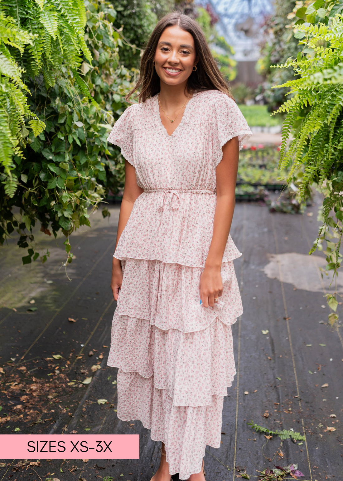 Mira Blush Rose Tiered Ruffle Little Girl Dress