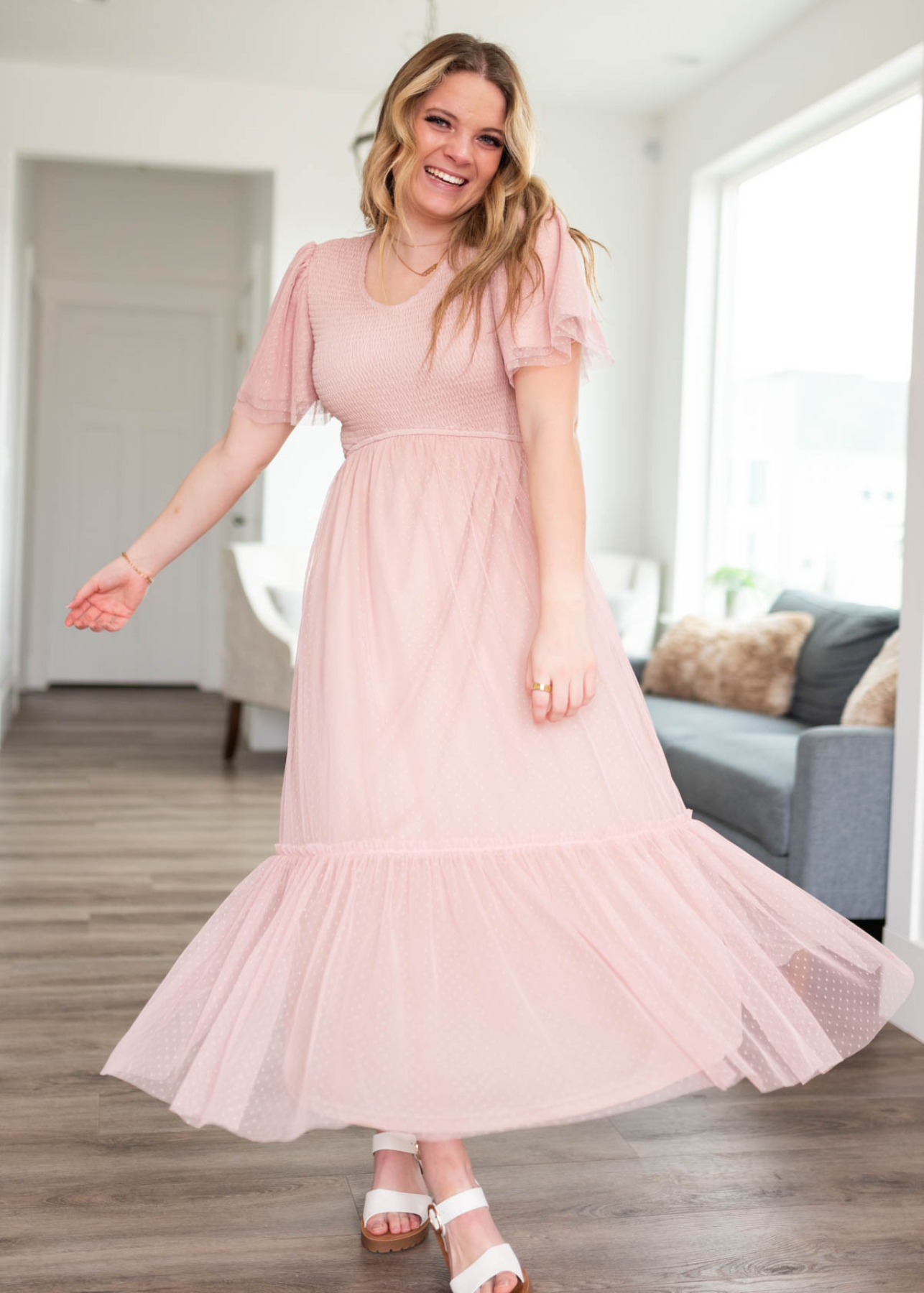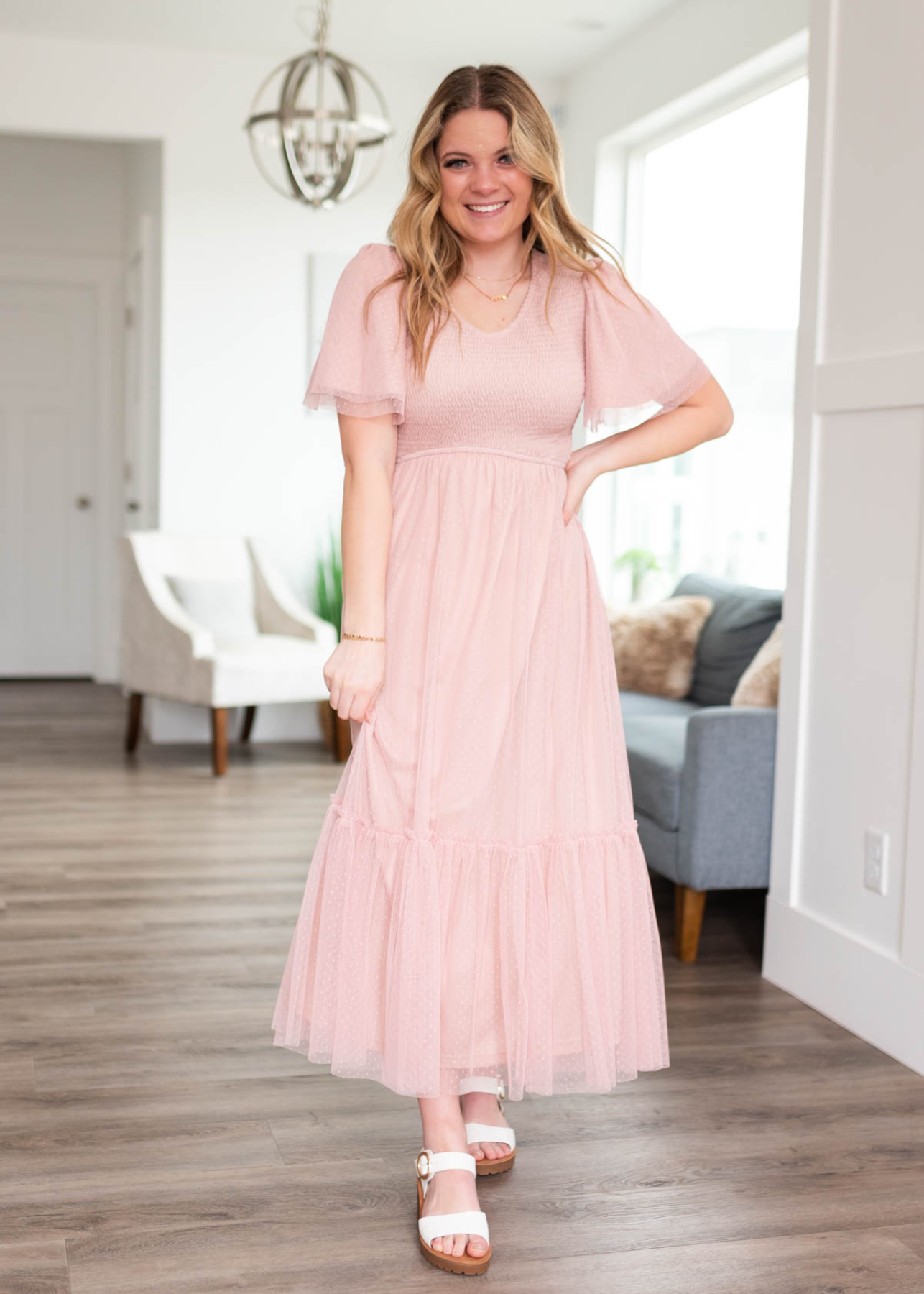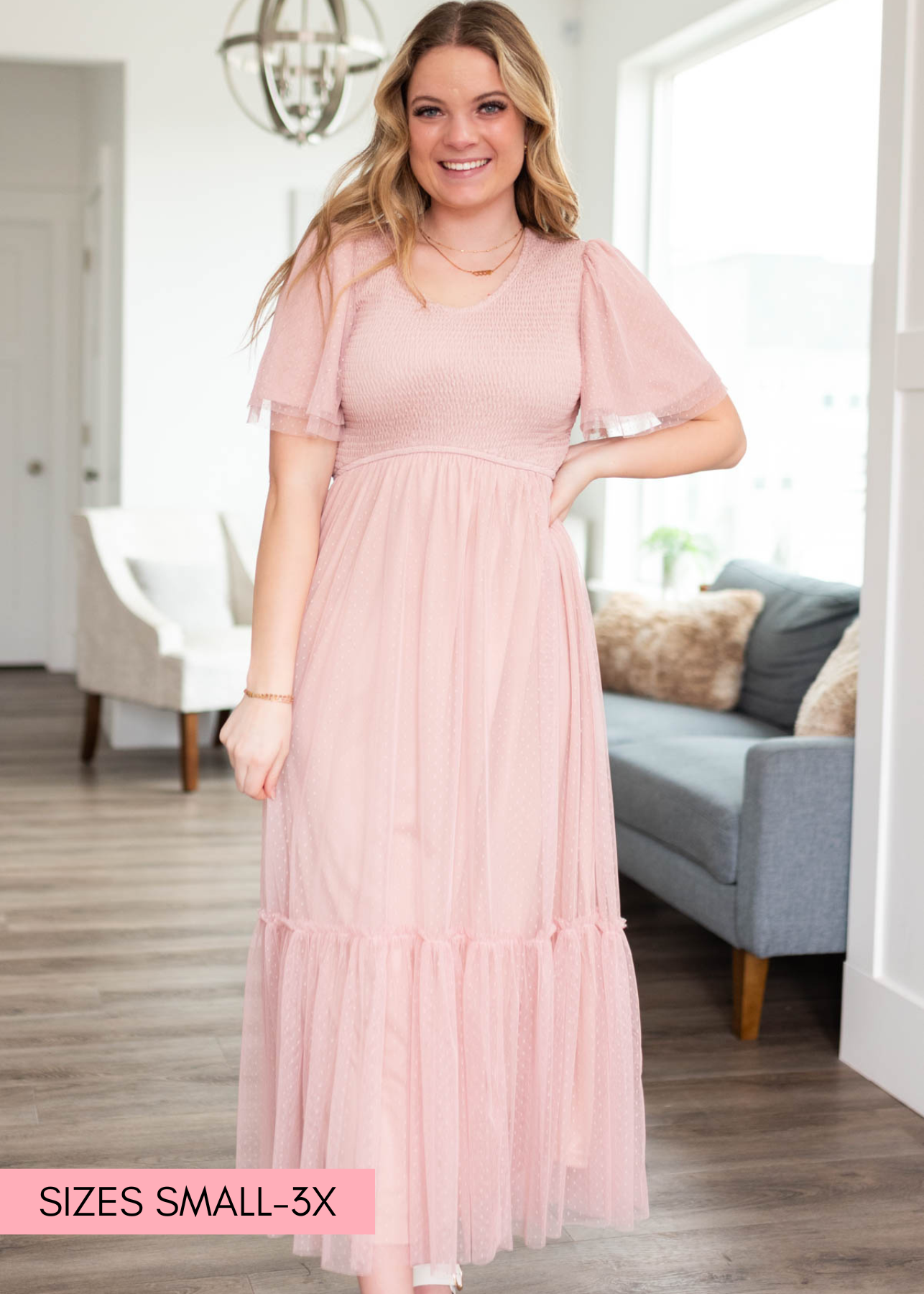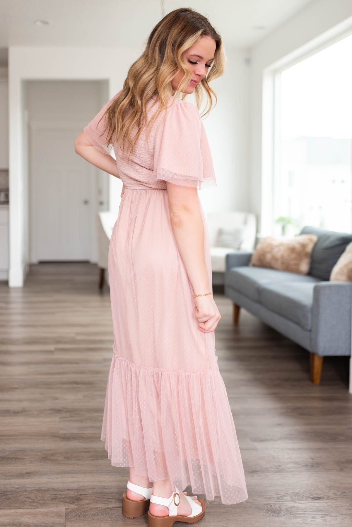 - Beautiful dotted mesh material that overlays the skirt and sleeves