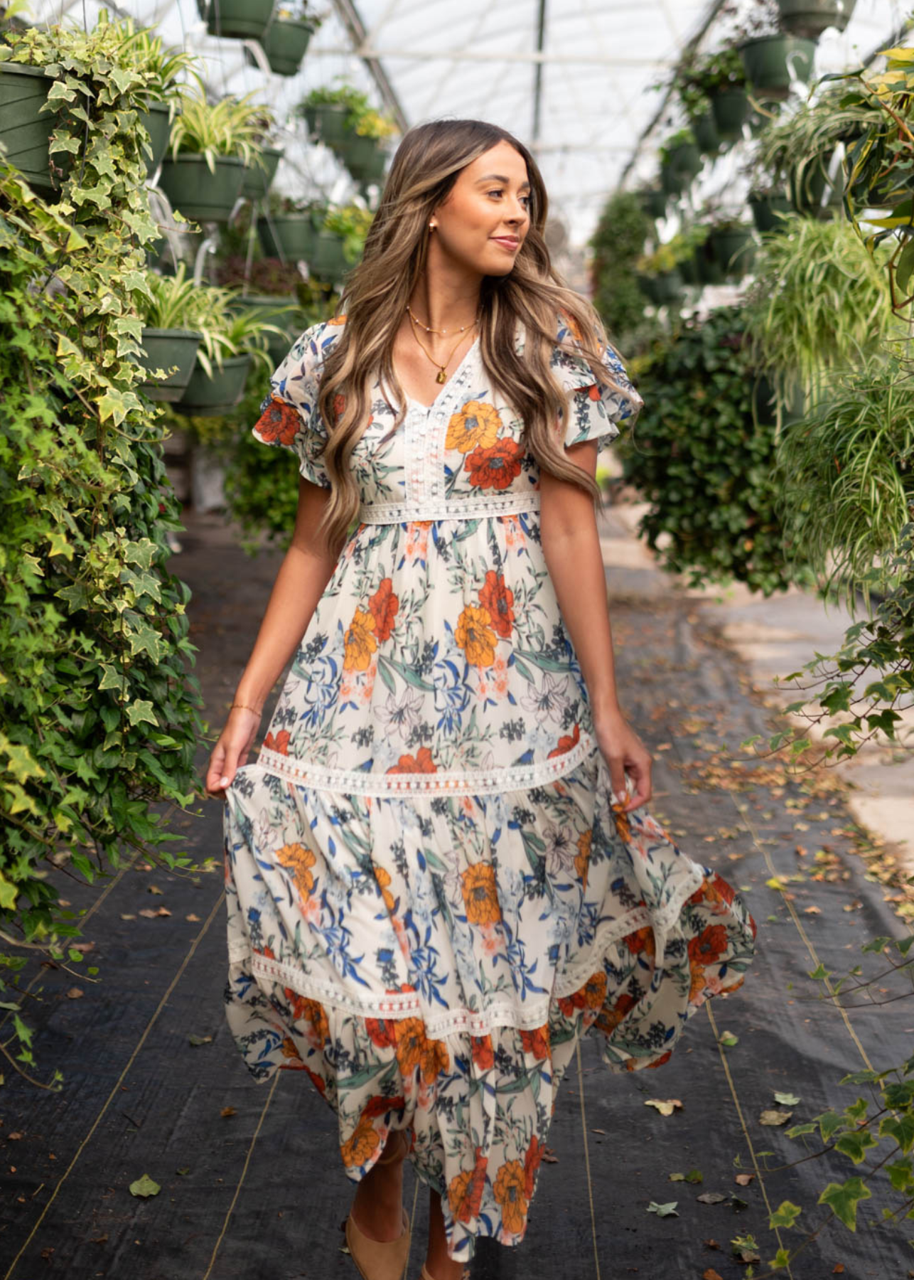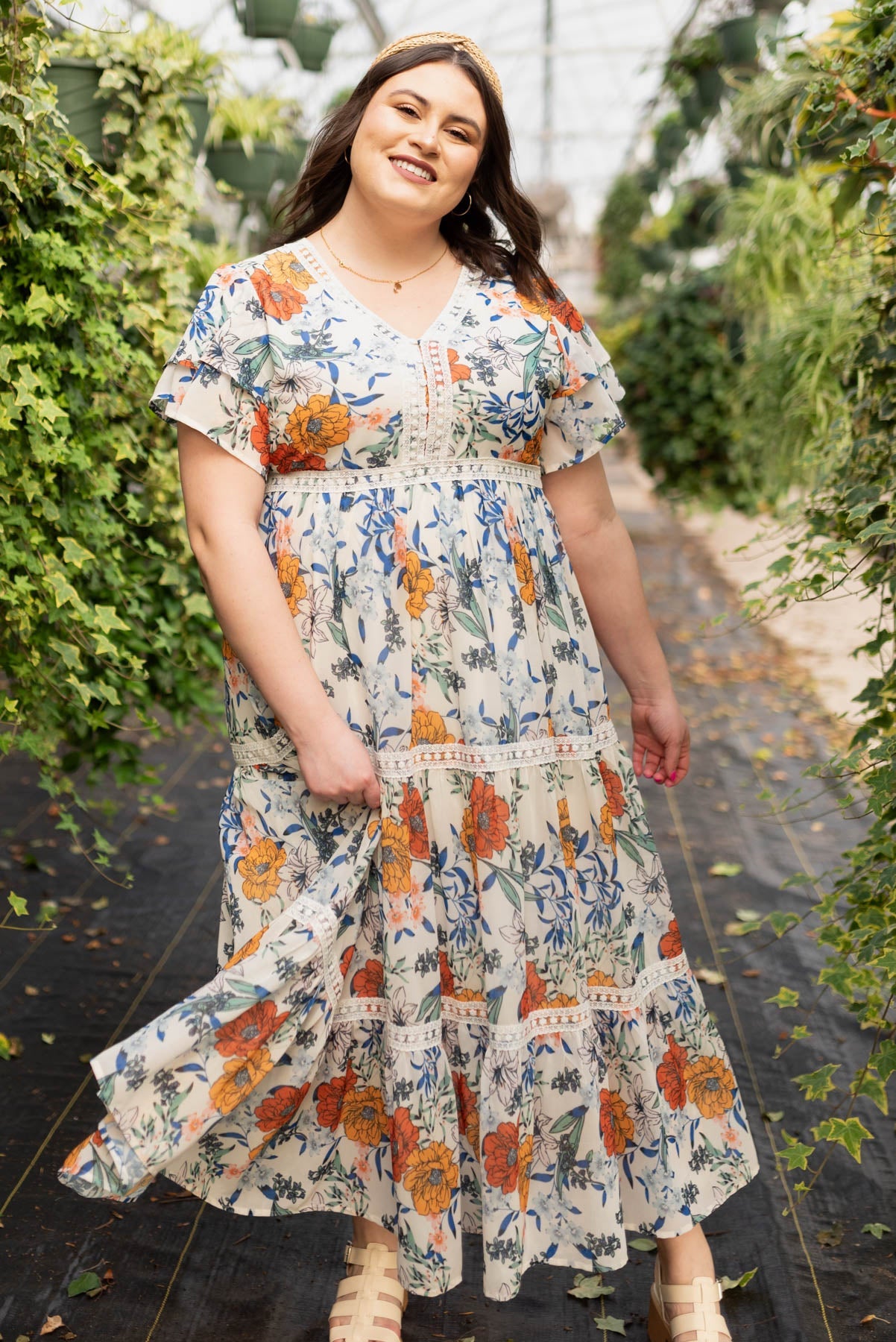Adelaide Cream Floral Tiered Dress