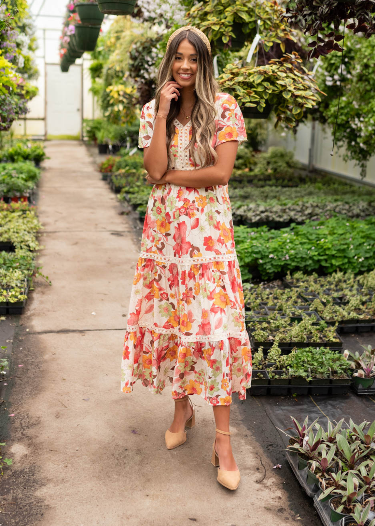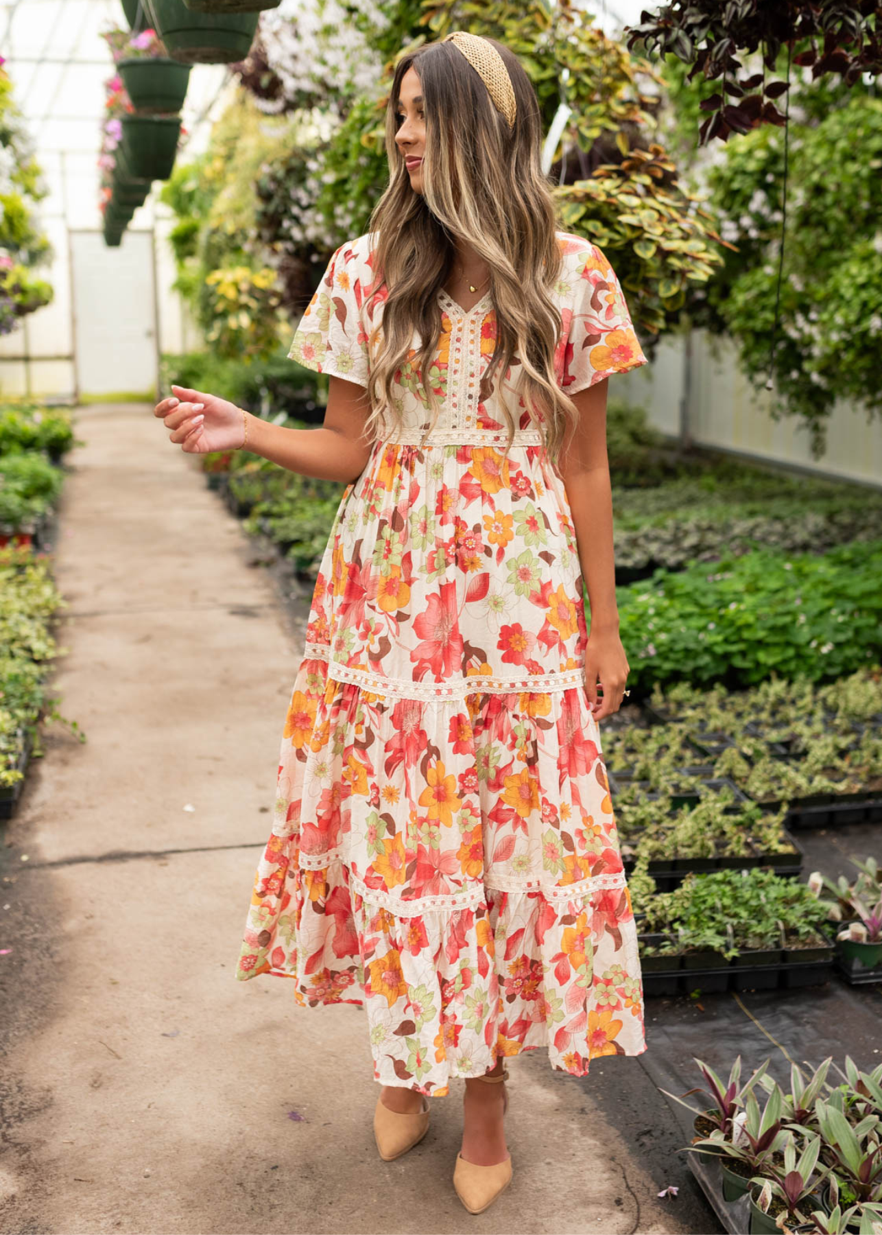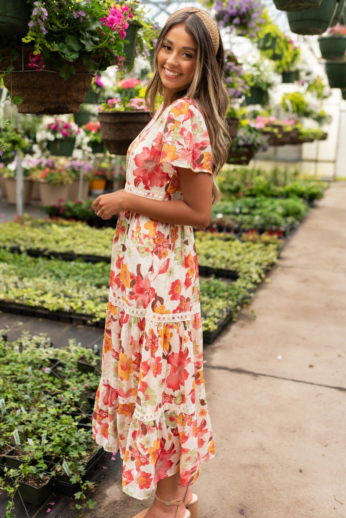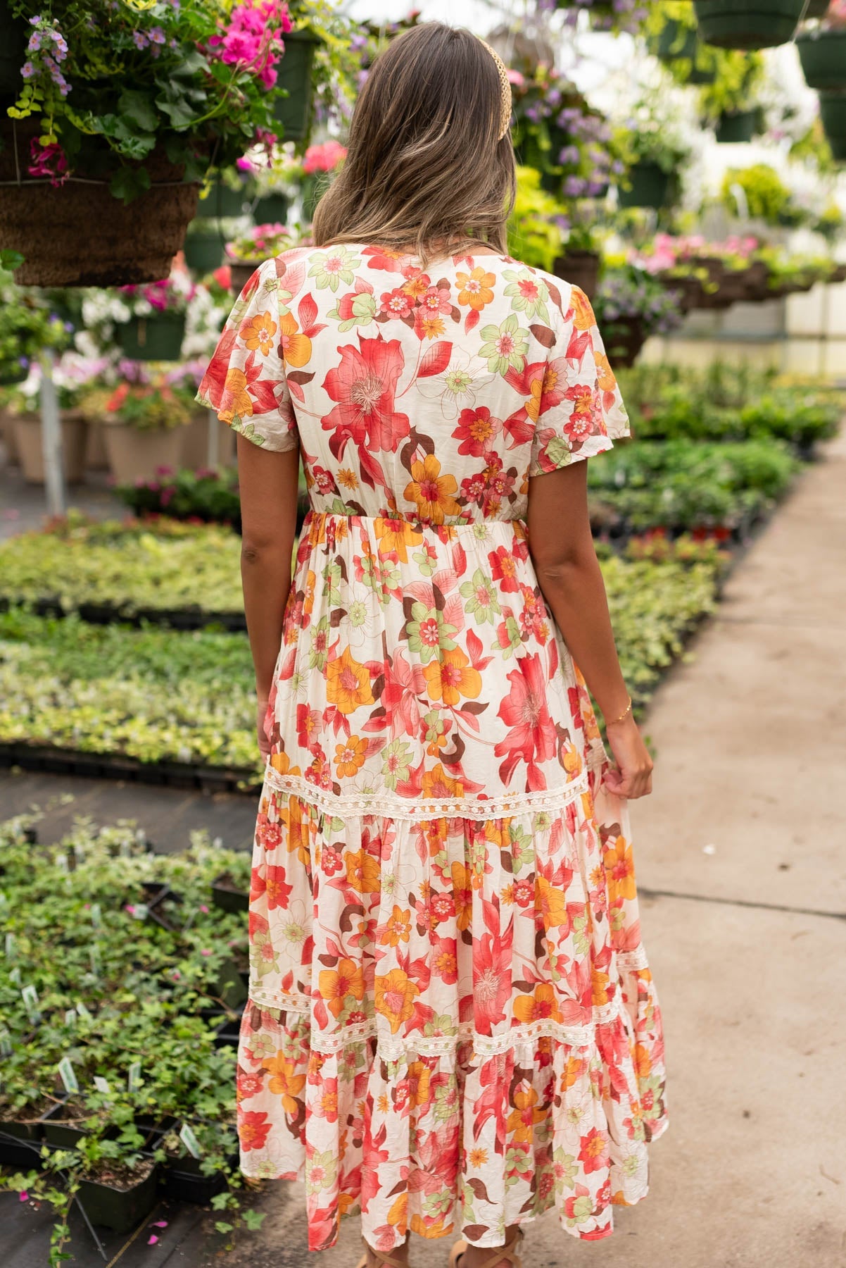Adia Red Multi Floral Tiered Dress