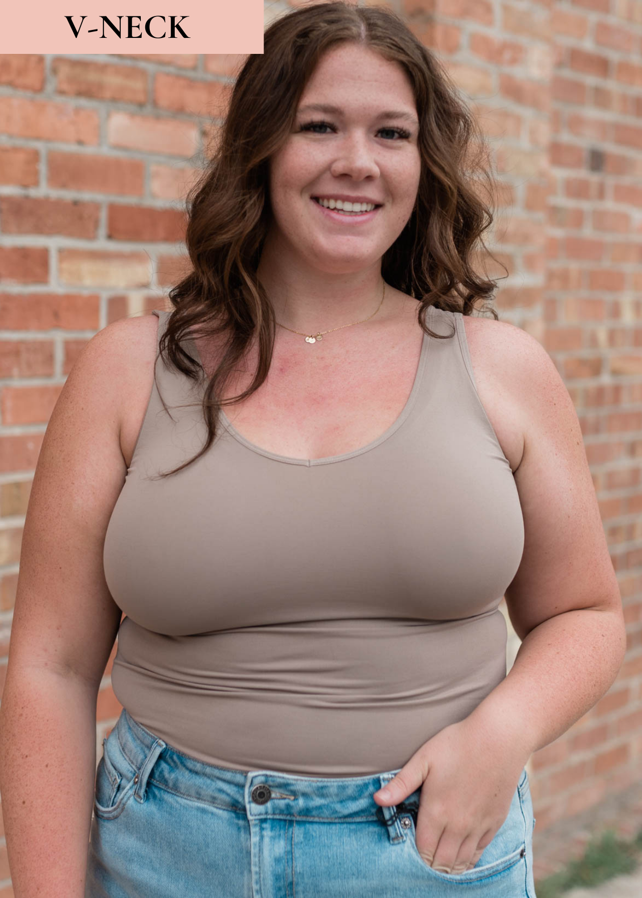 Meet our our new tank top obsession: The Alena Reversible Seamless Tank! A soon-to-be best seller and it's clear why. This high-quality seamless tank features a v-neckline and a scoop neckline, so you can style it 2 ways depending on your outfit! Style it with the v-neck in front and the scoop neck on back, or the other way around! It's a MUST-HAVE.