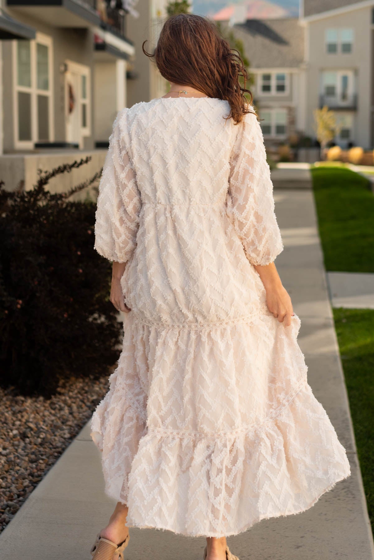 - Fully lined + lined cap sleeves. The rest of the sleeve is sheer