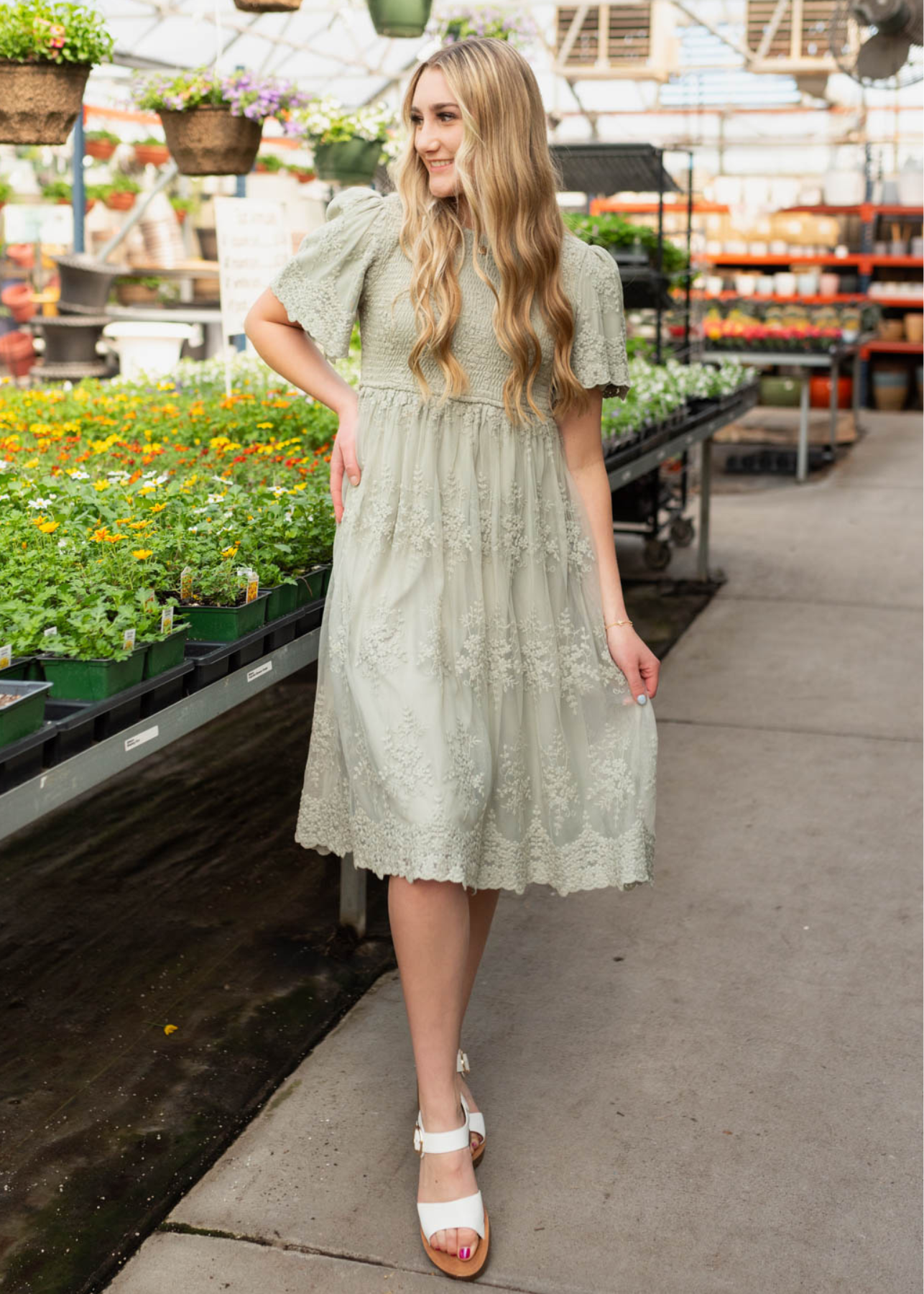 - Smocked bodice for comfortable fit