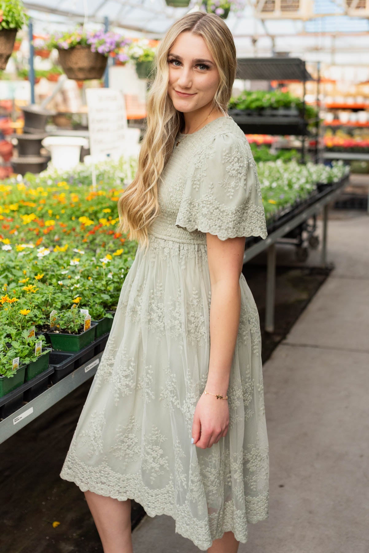 Alyanna Sage Embroidered Dress
