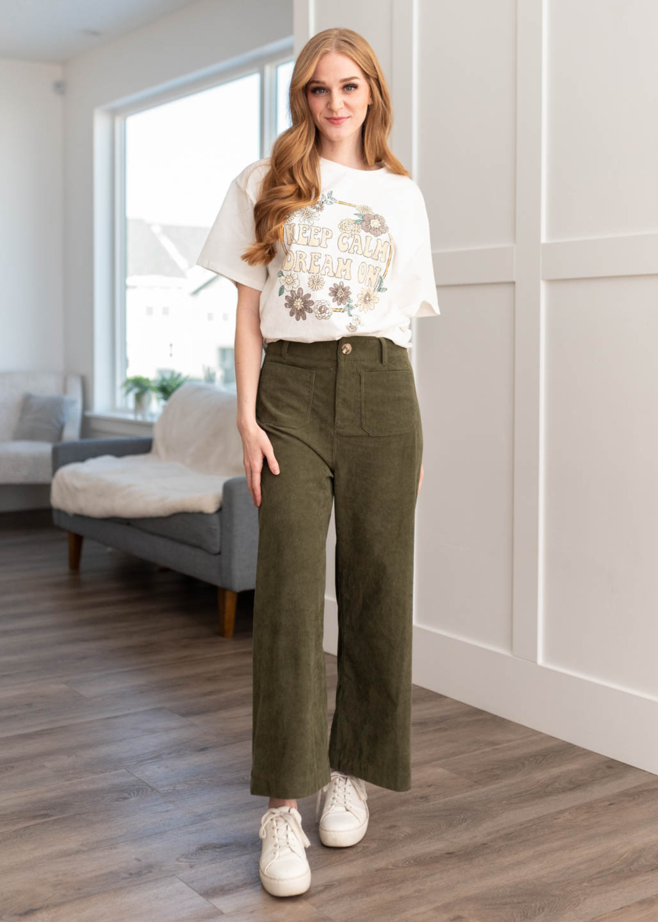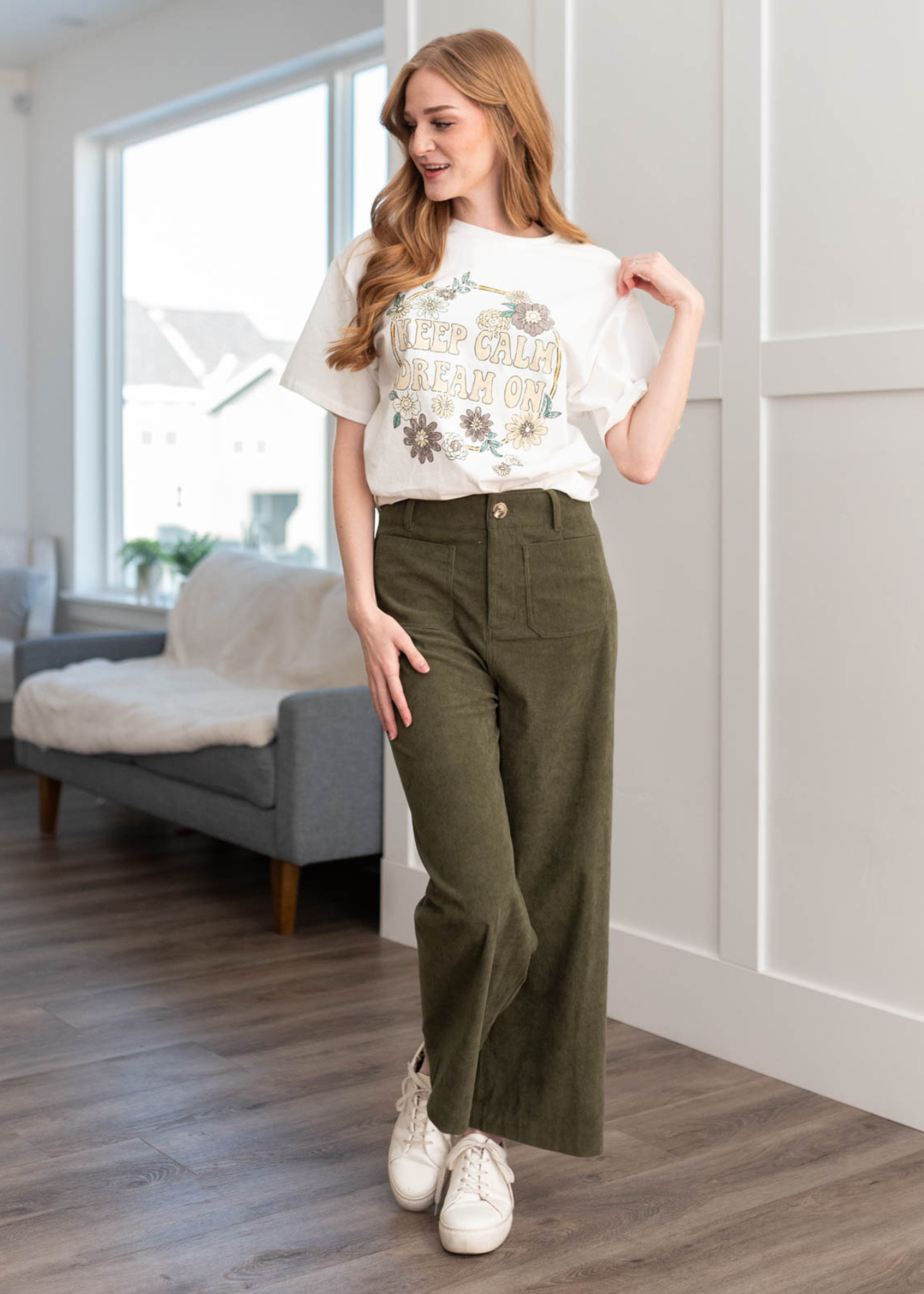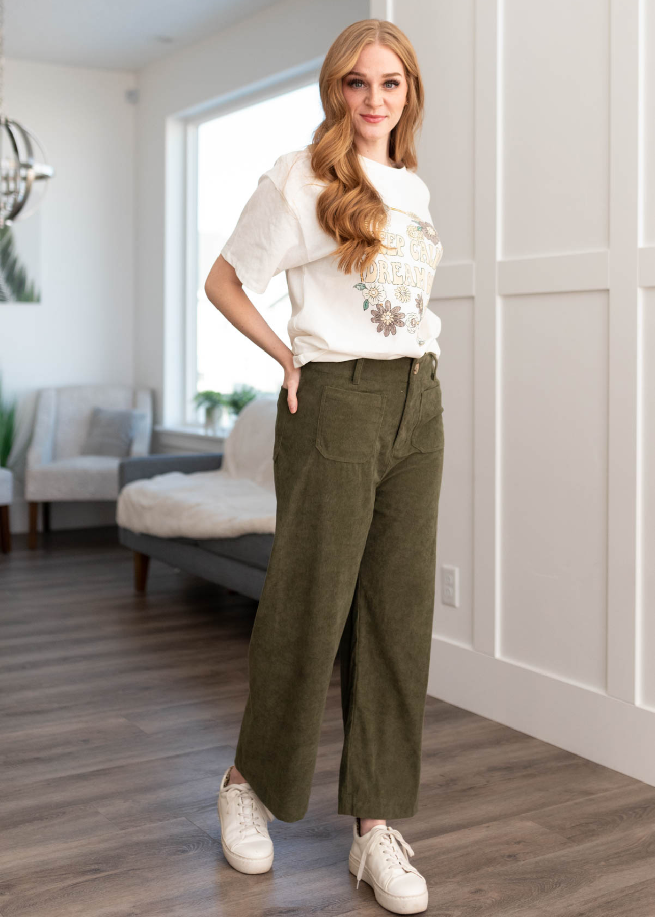 Amia Olive Corduroy Pants