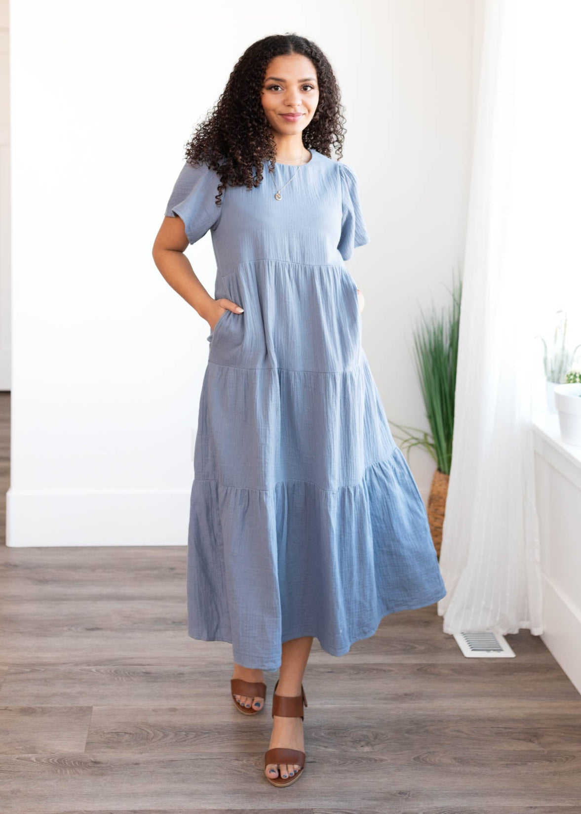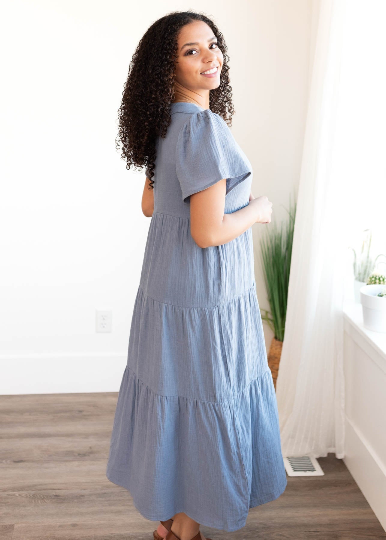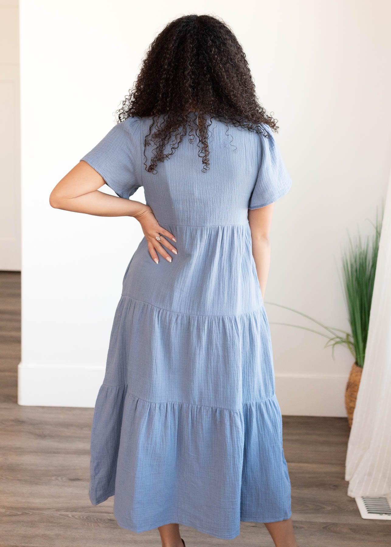 Analicia Blue Gauze Tiered Dress