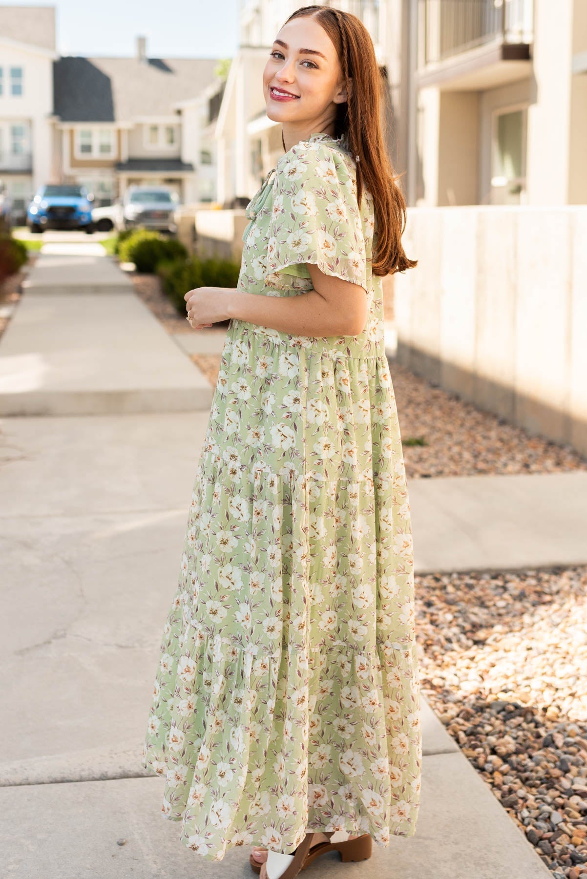 Andee Sage Floral Dress