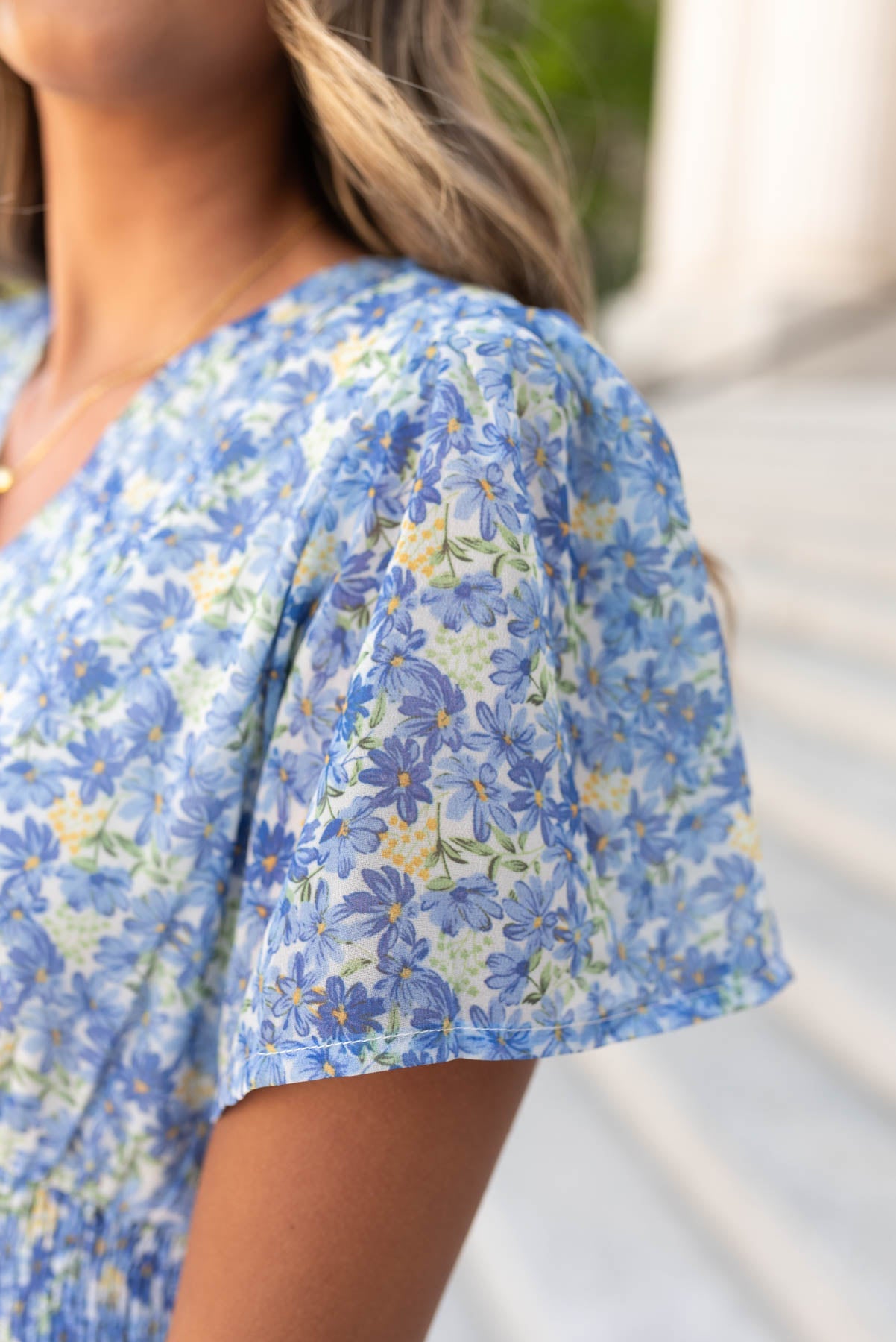 - Stunning blue and yellow floral print with hints of green