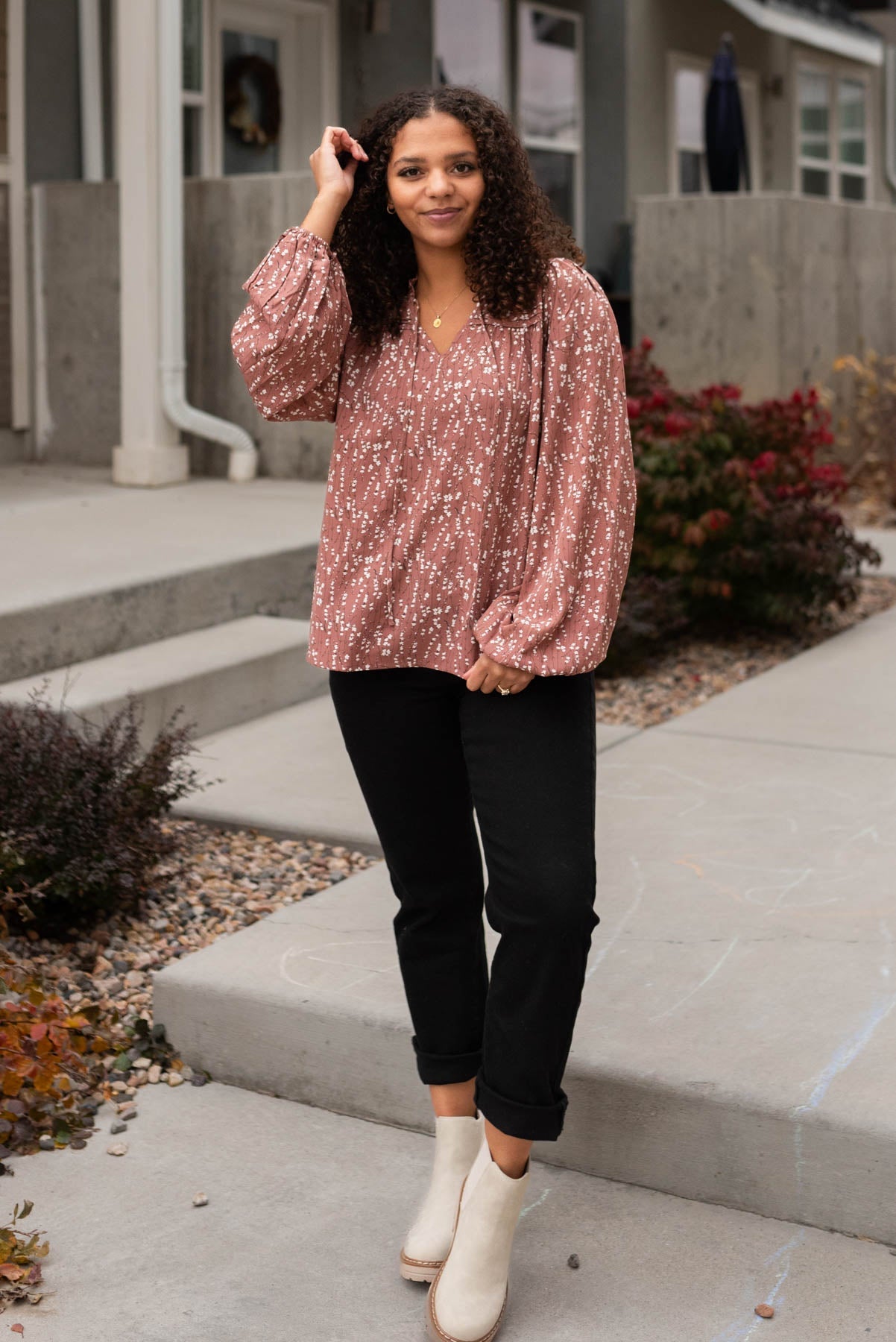 Apryl Marsala Floral Blouse