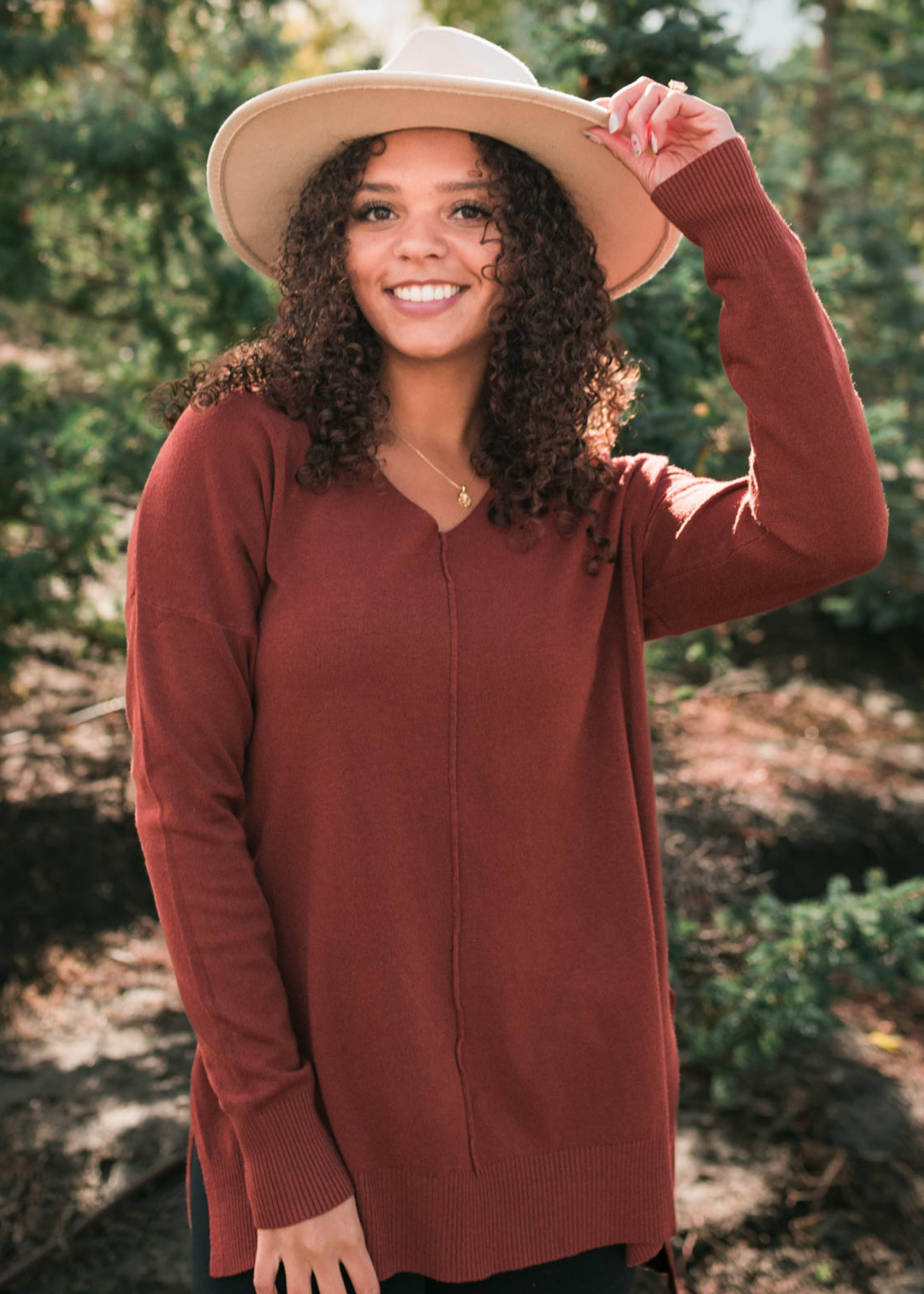 Ardelia Dark Rust V Neck Sweater