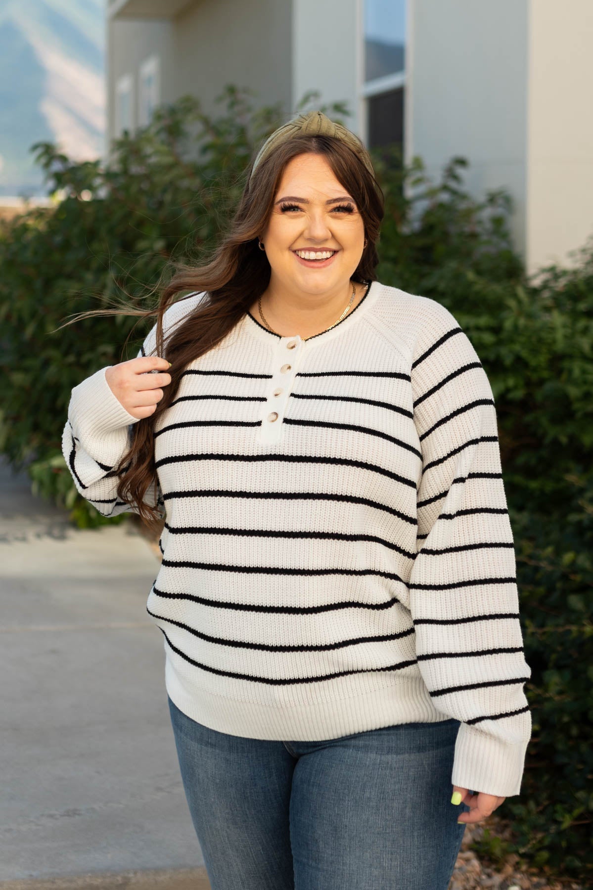 - Soft & cozy knit + button front