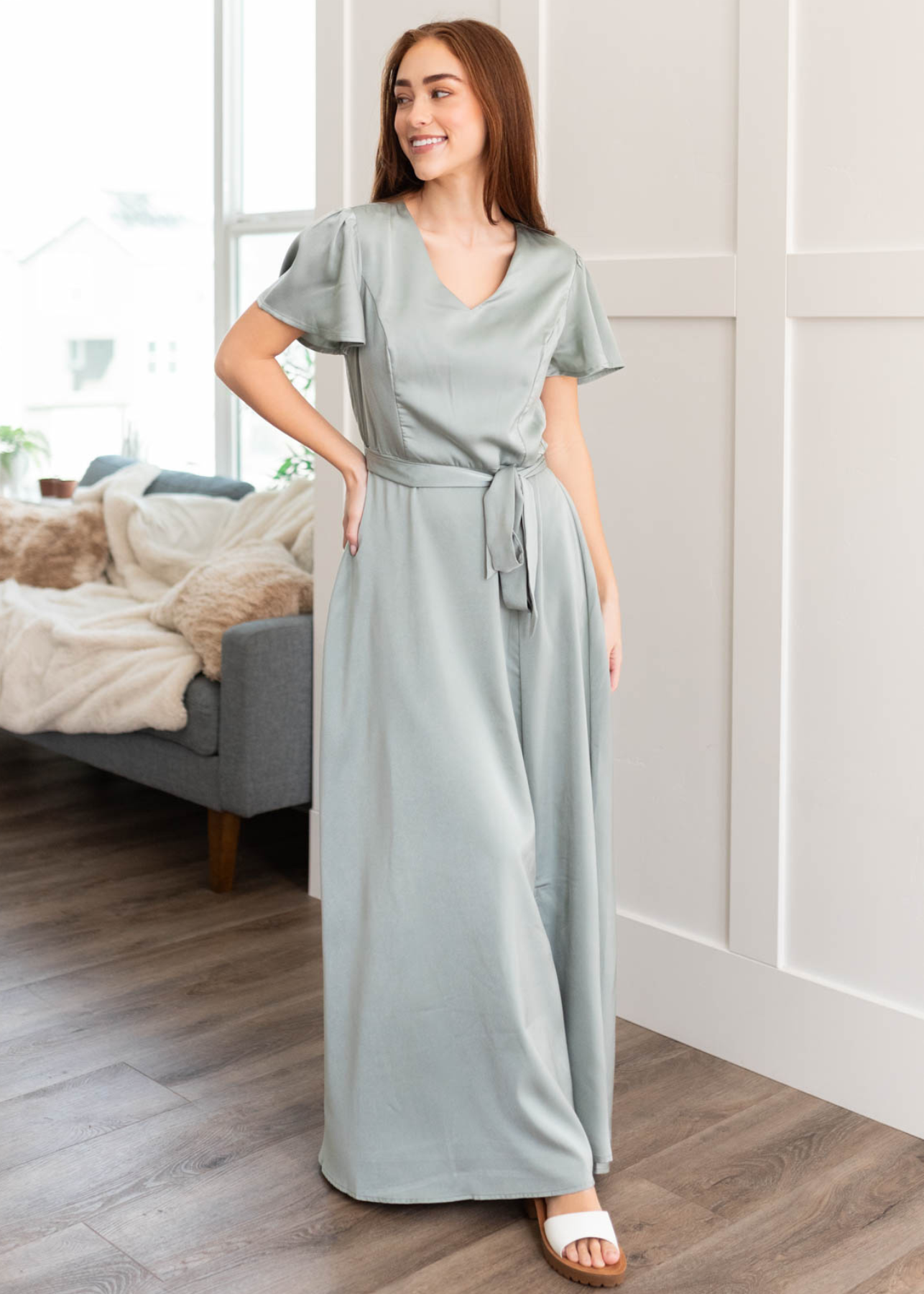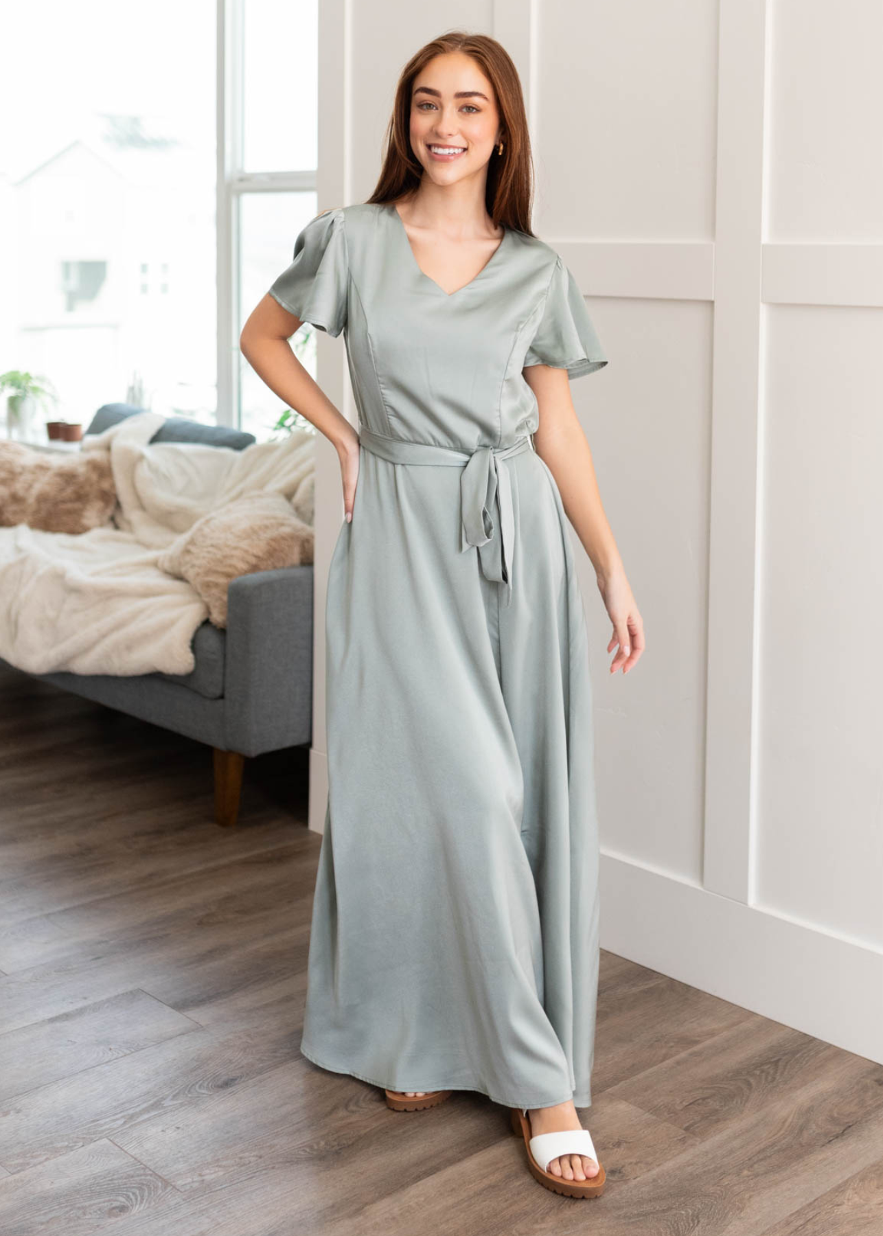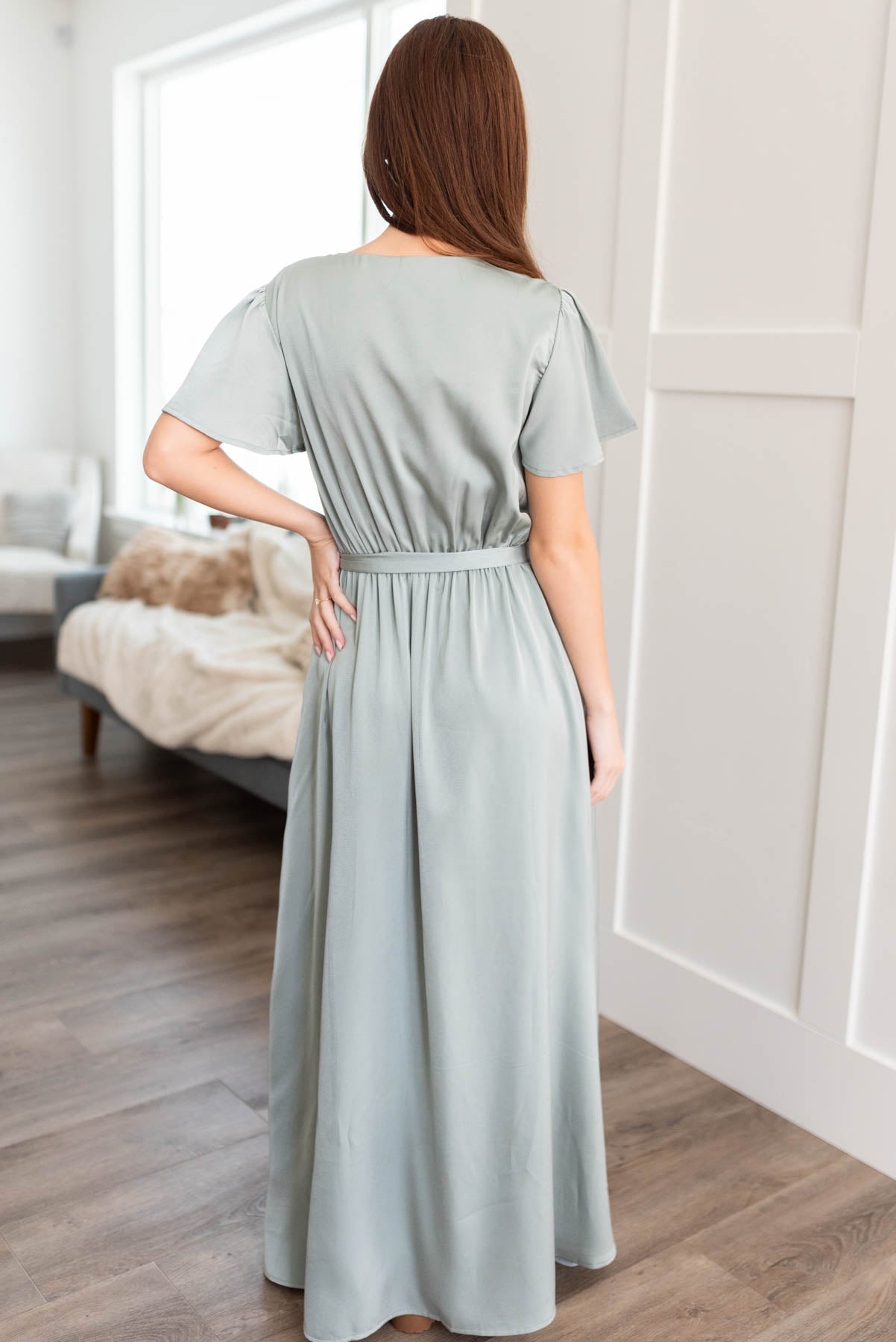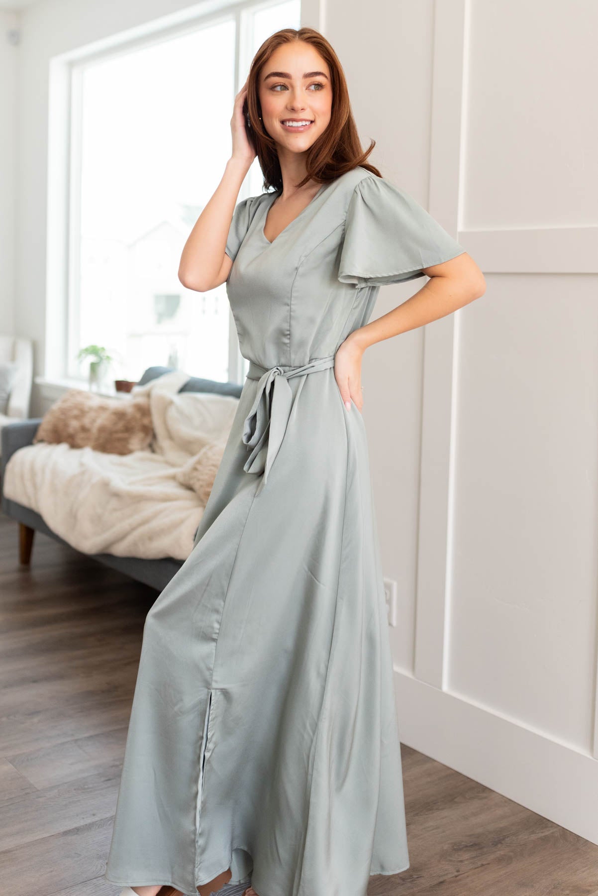 Asha Sage Satin Dress
