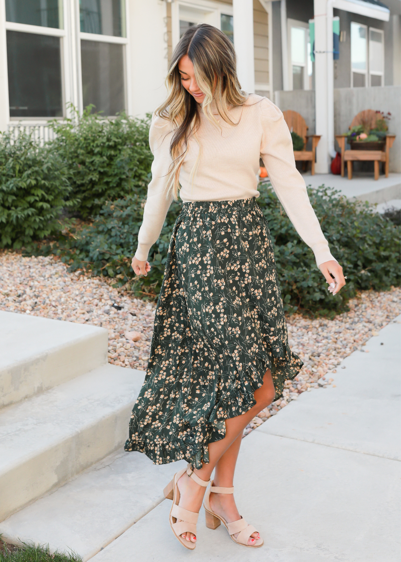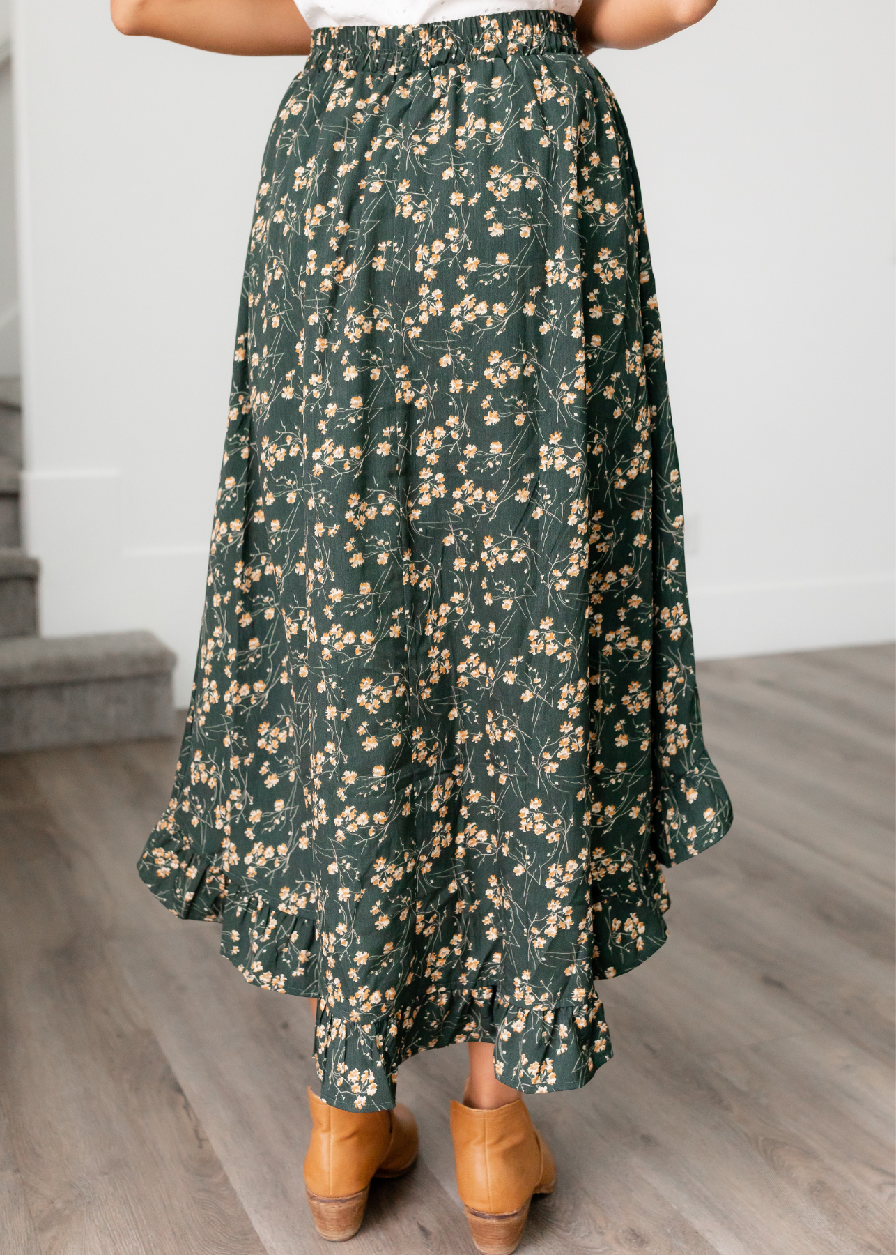 - Ruffled hemline