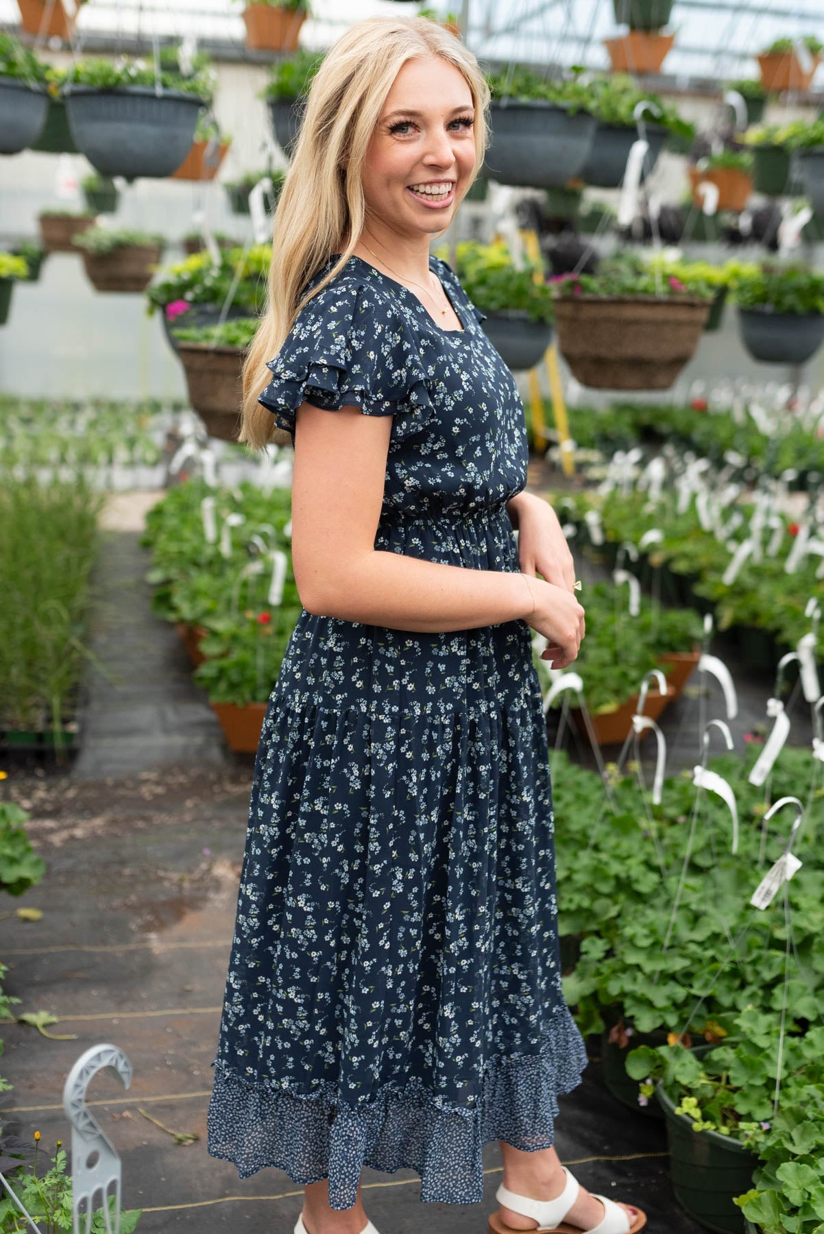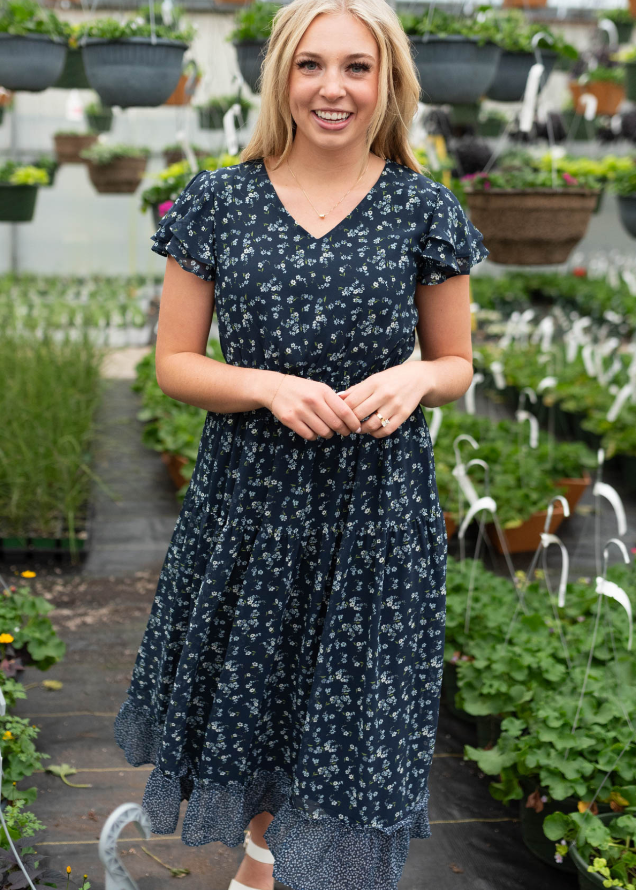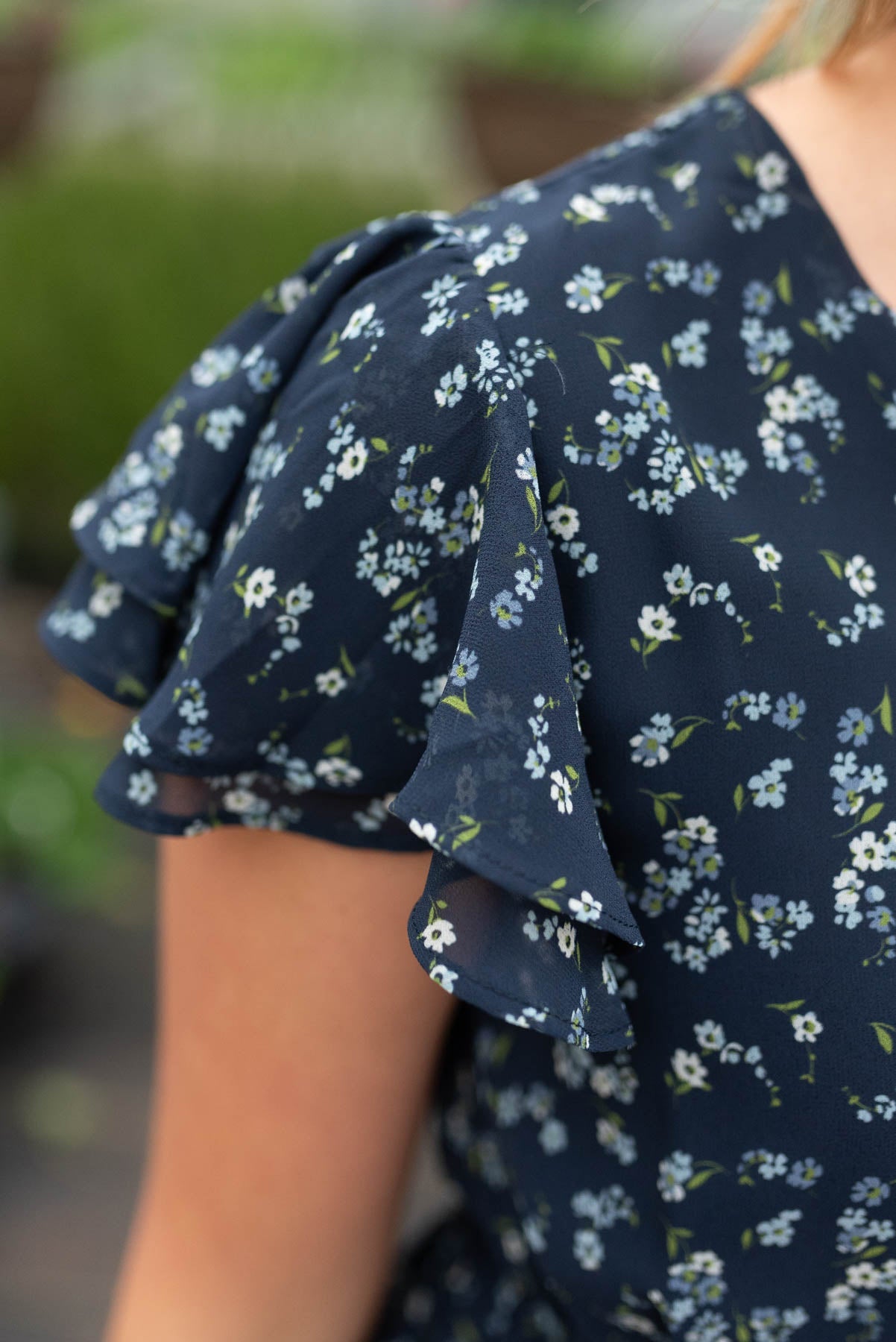 - Beautiful flowy fabric in navy blue and white and mixed patterns.