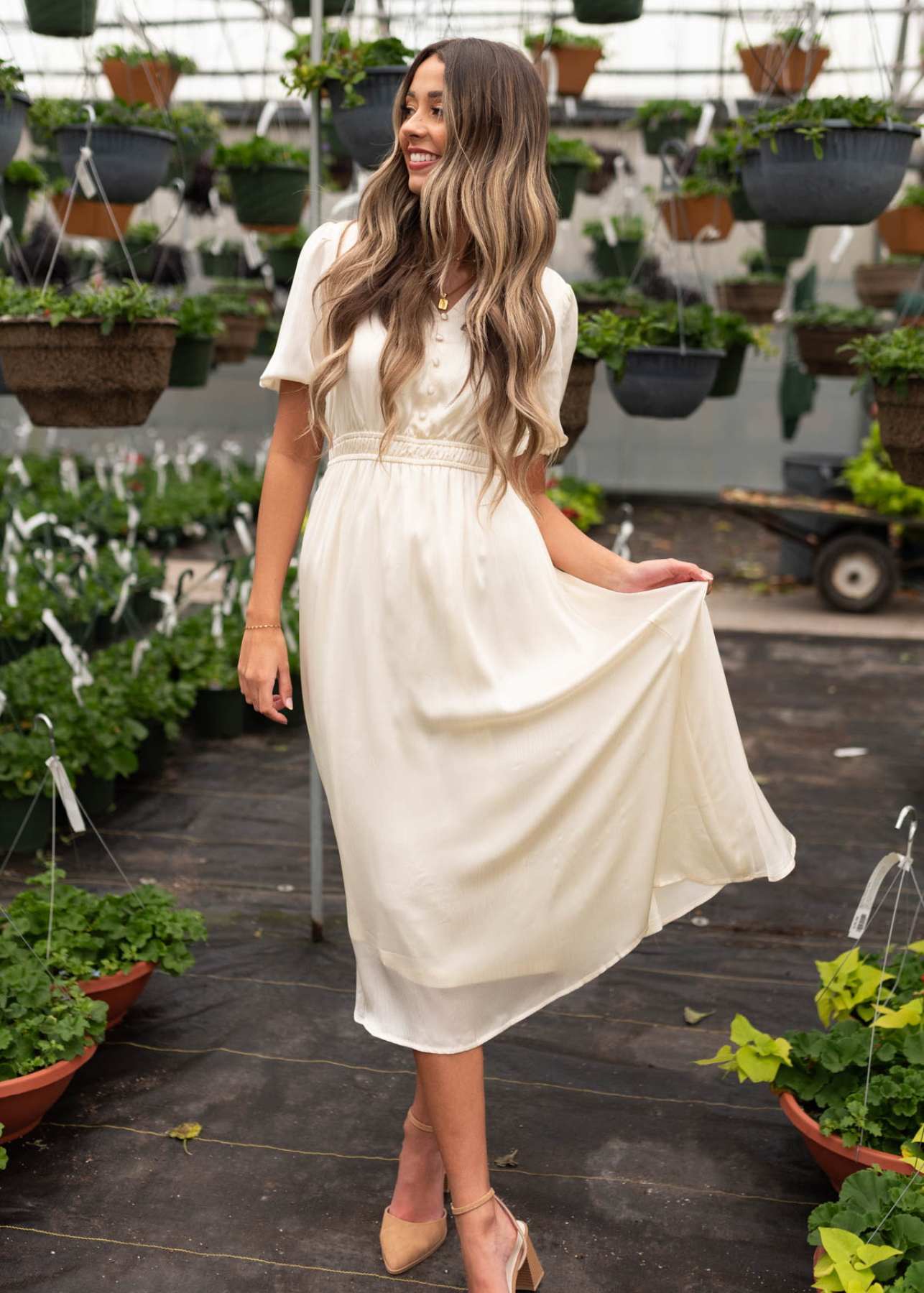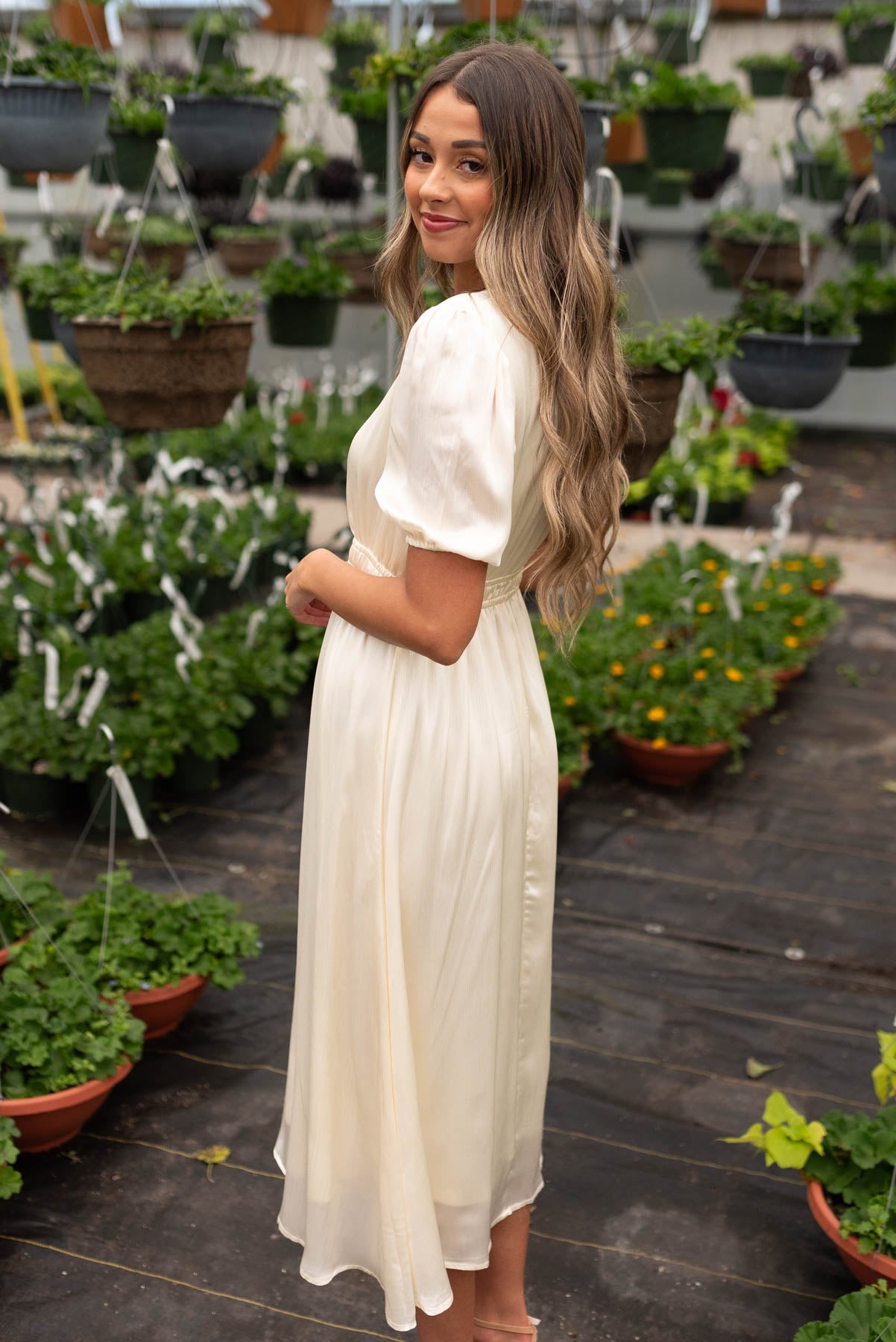 Becca Cream Ruffle Satin Dress