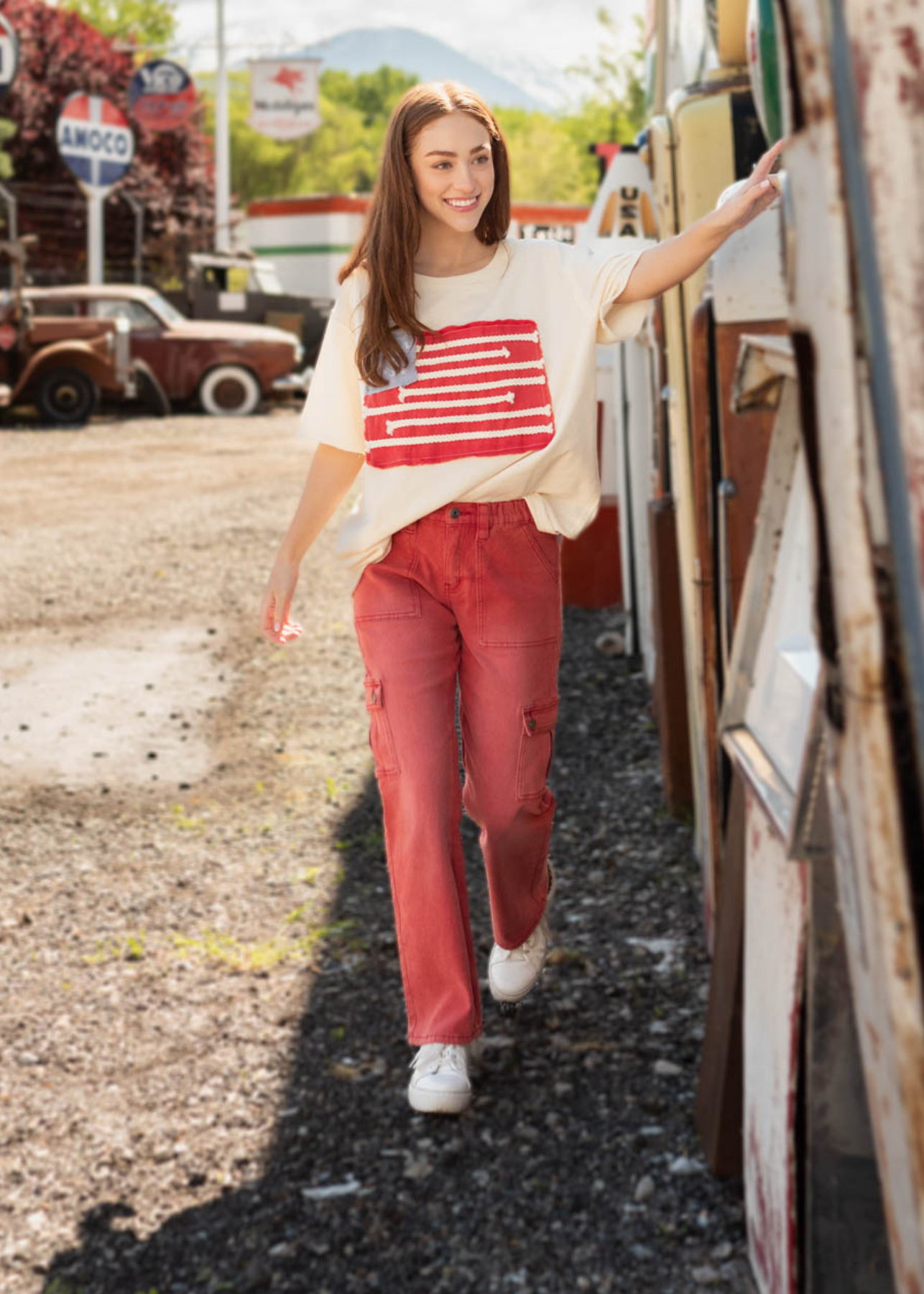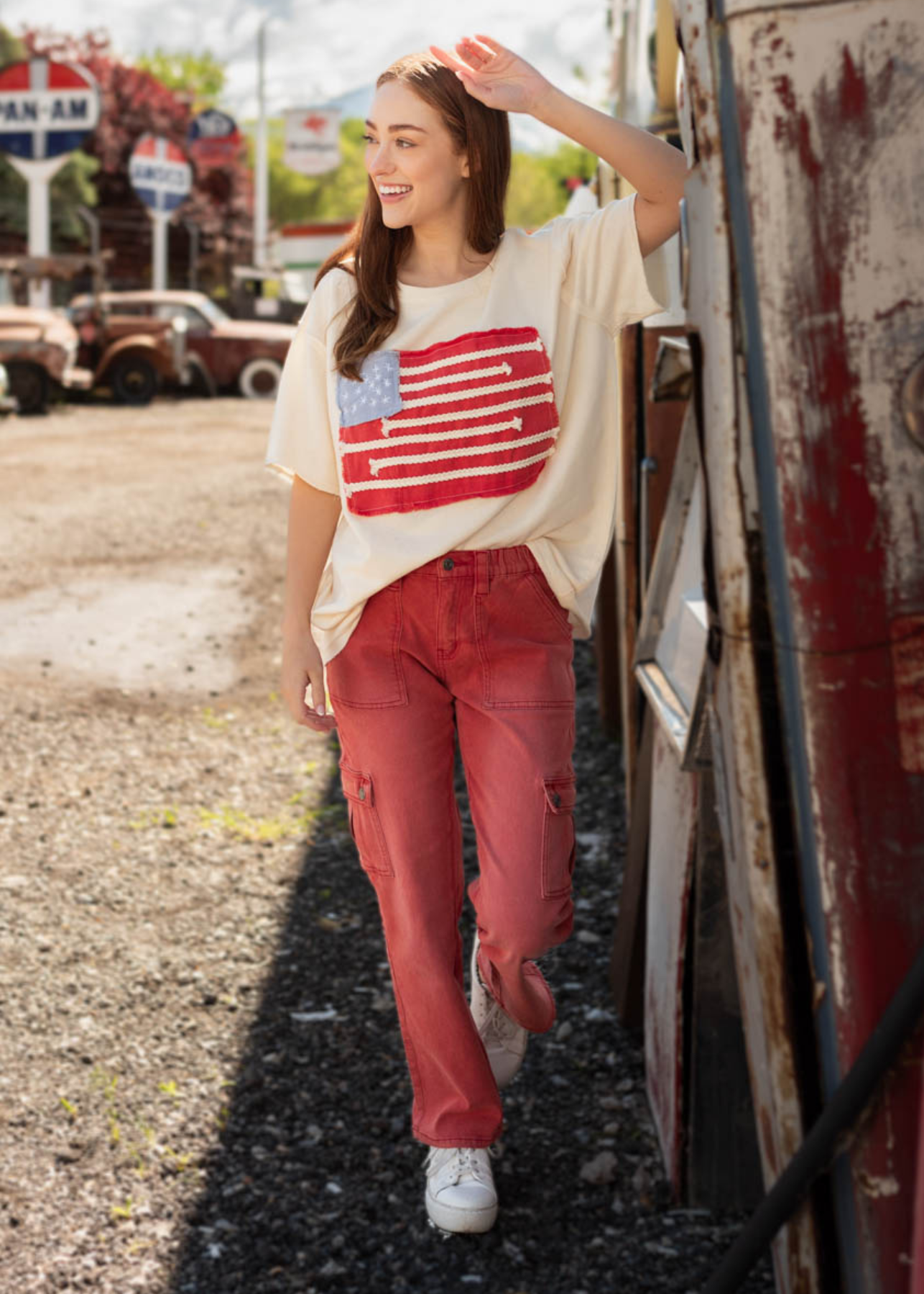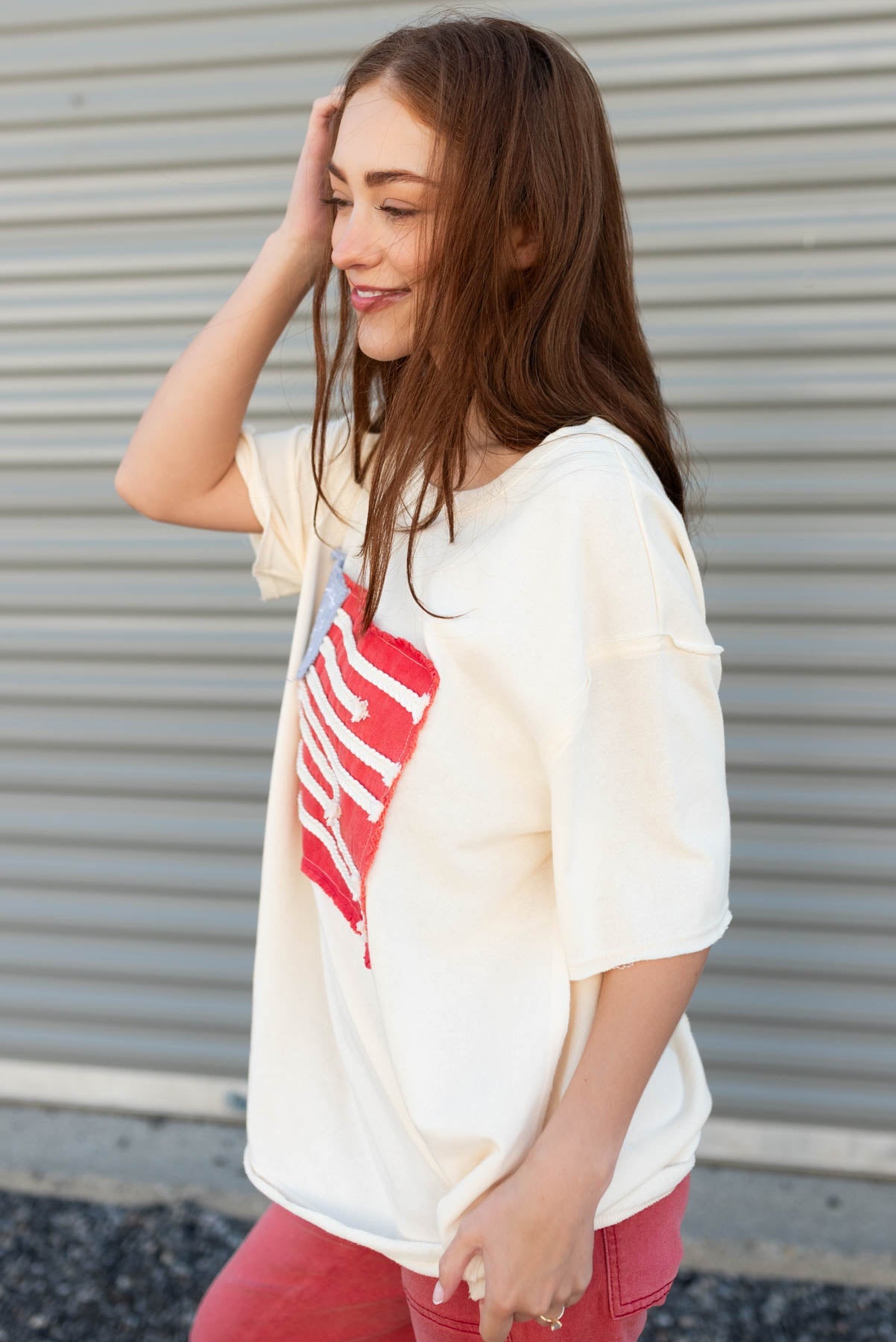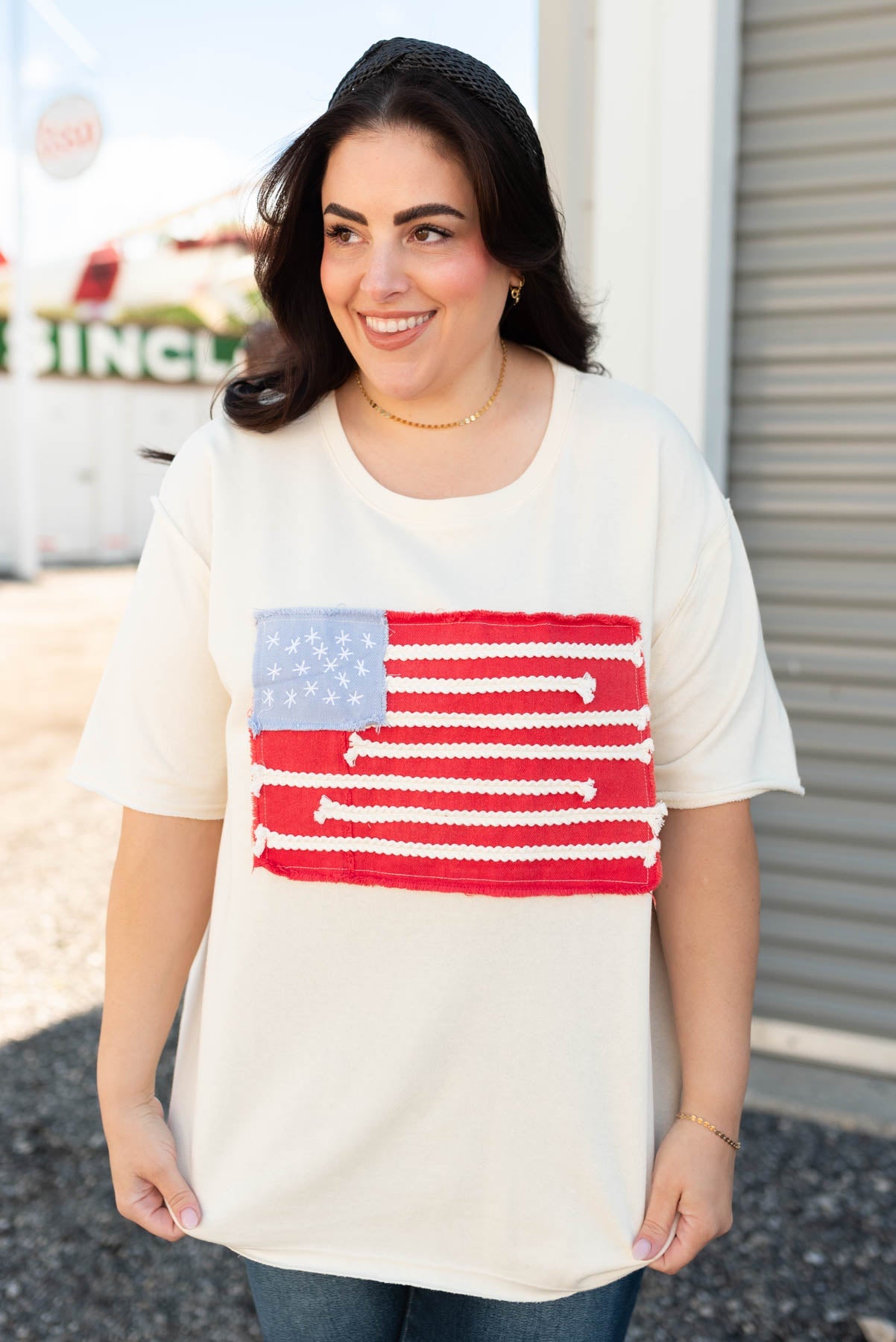Betsy Ivory American Flag Patch Top