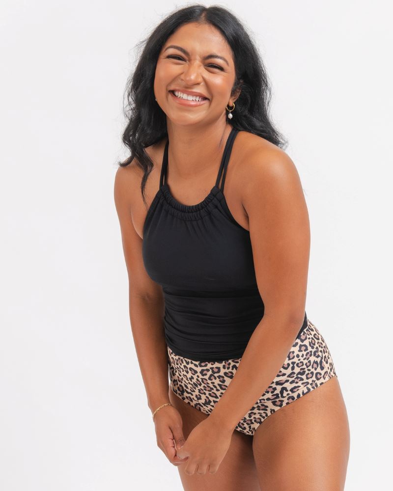 This style is a Lime Ricki staple that's been around since the beginning making it a Lime Ricki classic! Featuring a high neckline and double criss-crossing straps, this top has full coverage and built-in support.