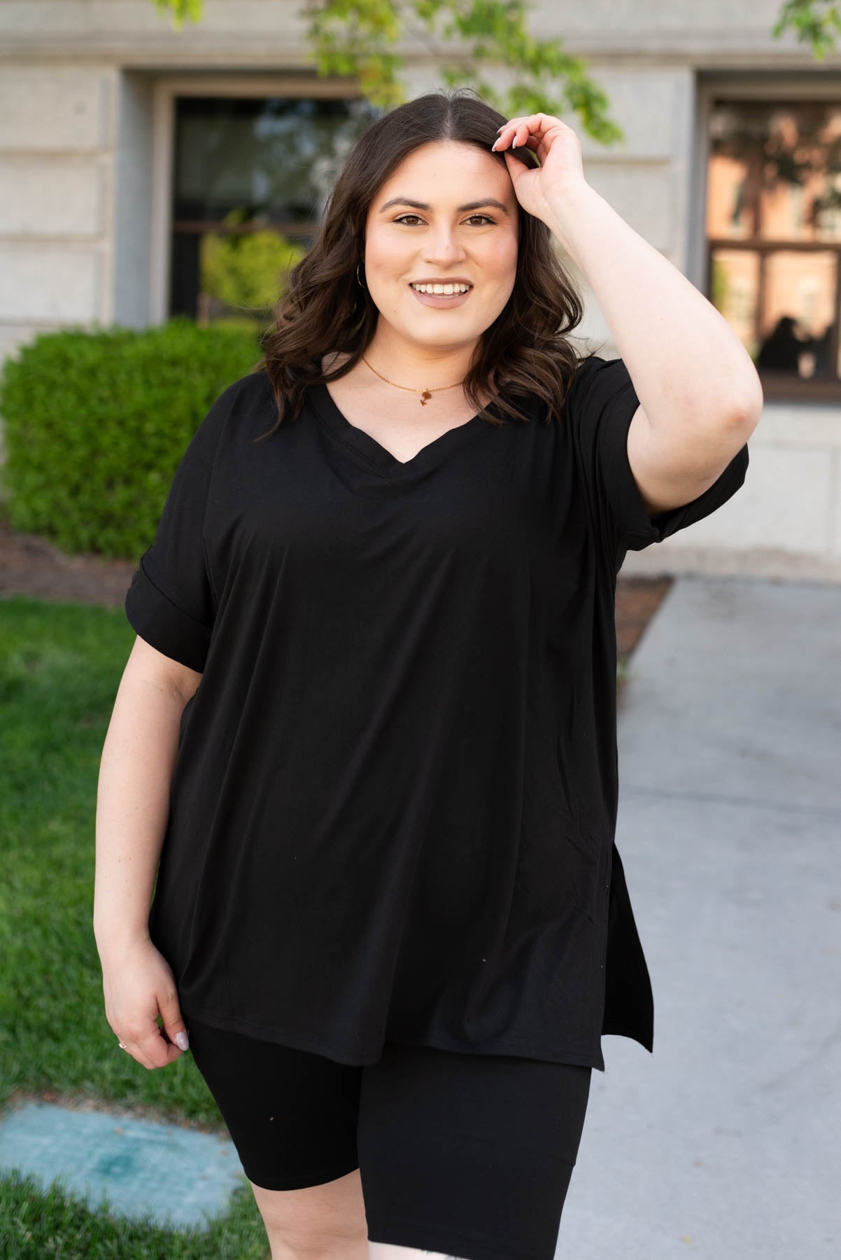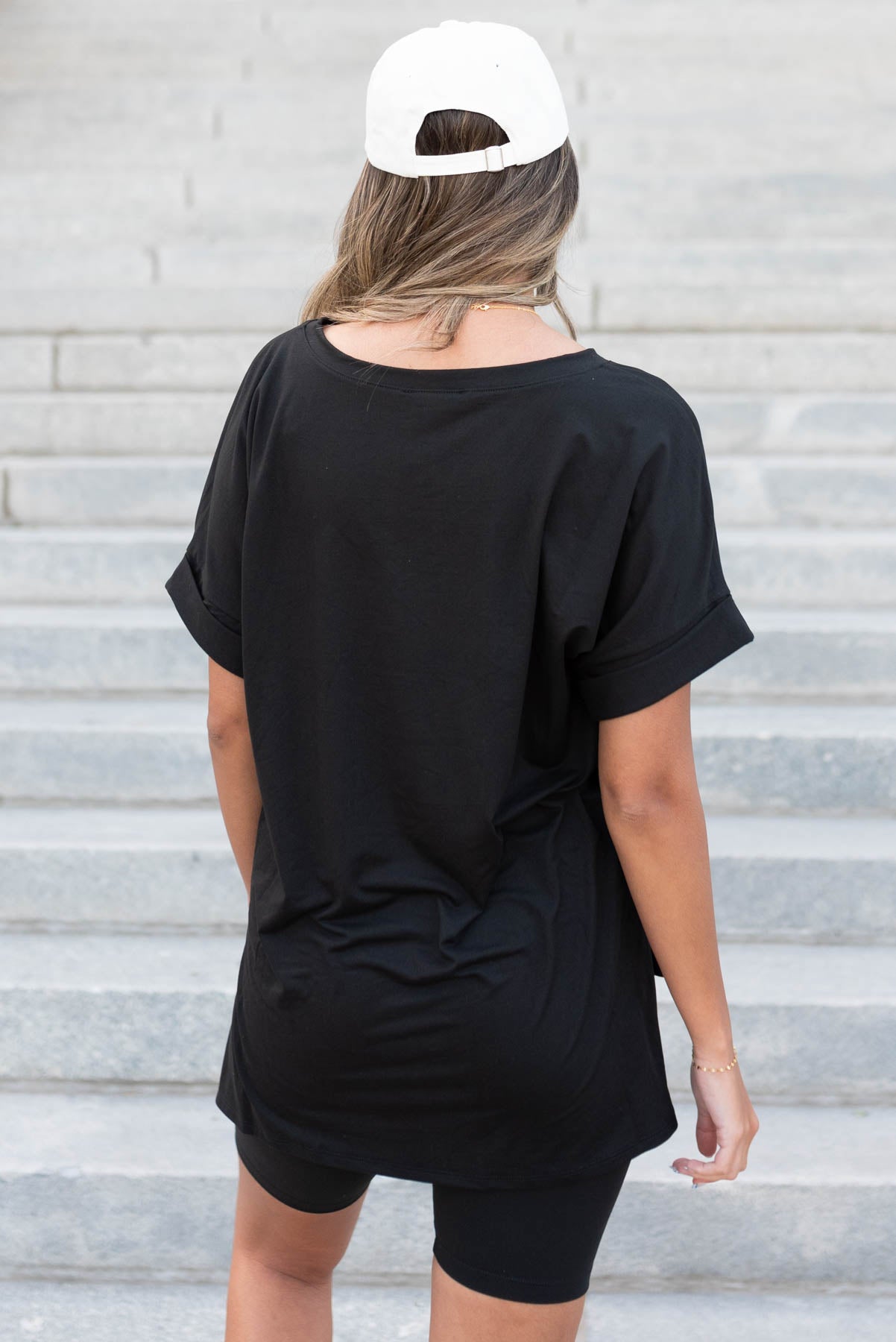 - Polyester/spandex blend for a relaxed, comfortable fit