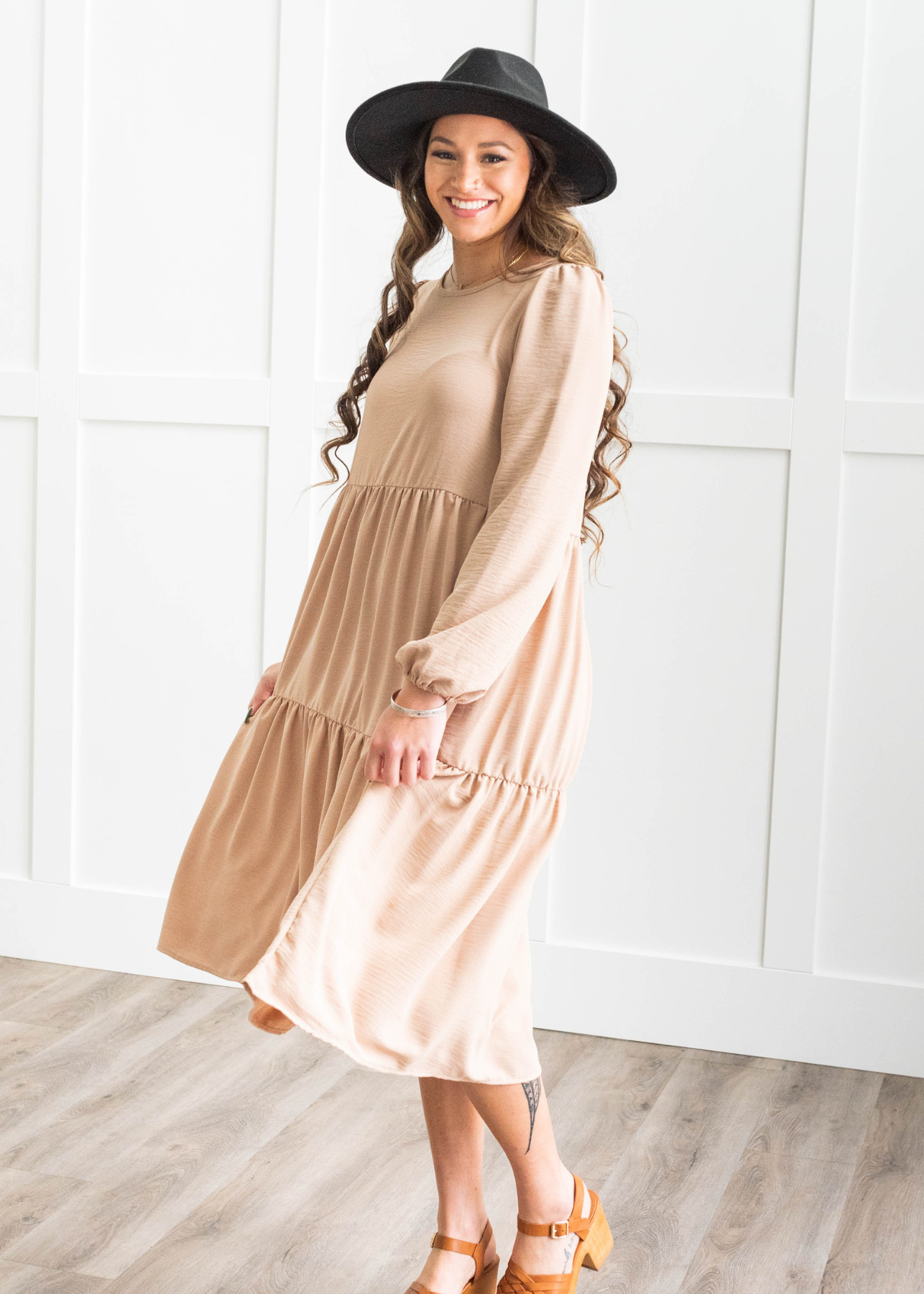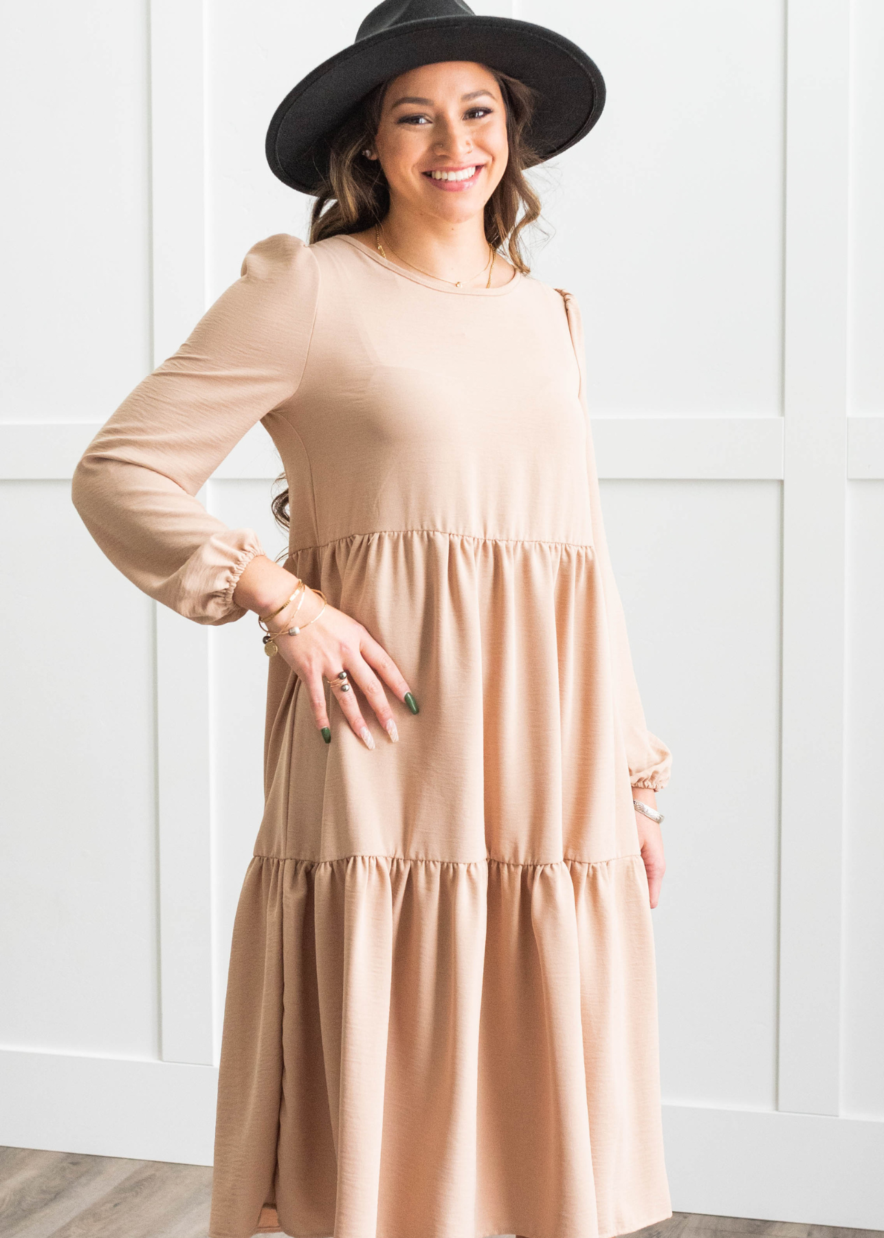 - Flattering tiered fit + balloon sleeves