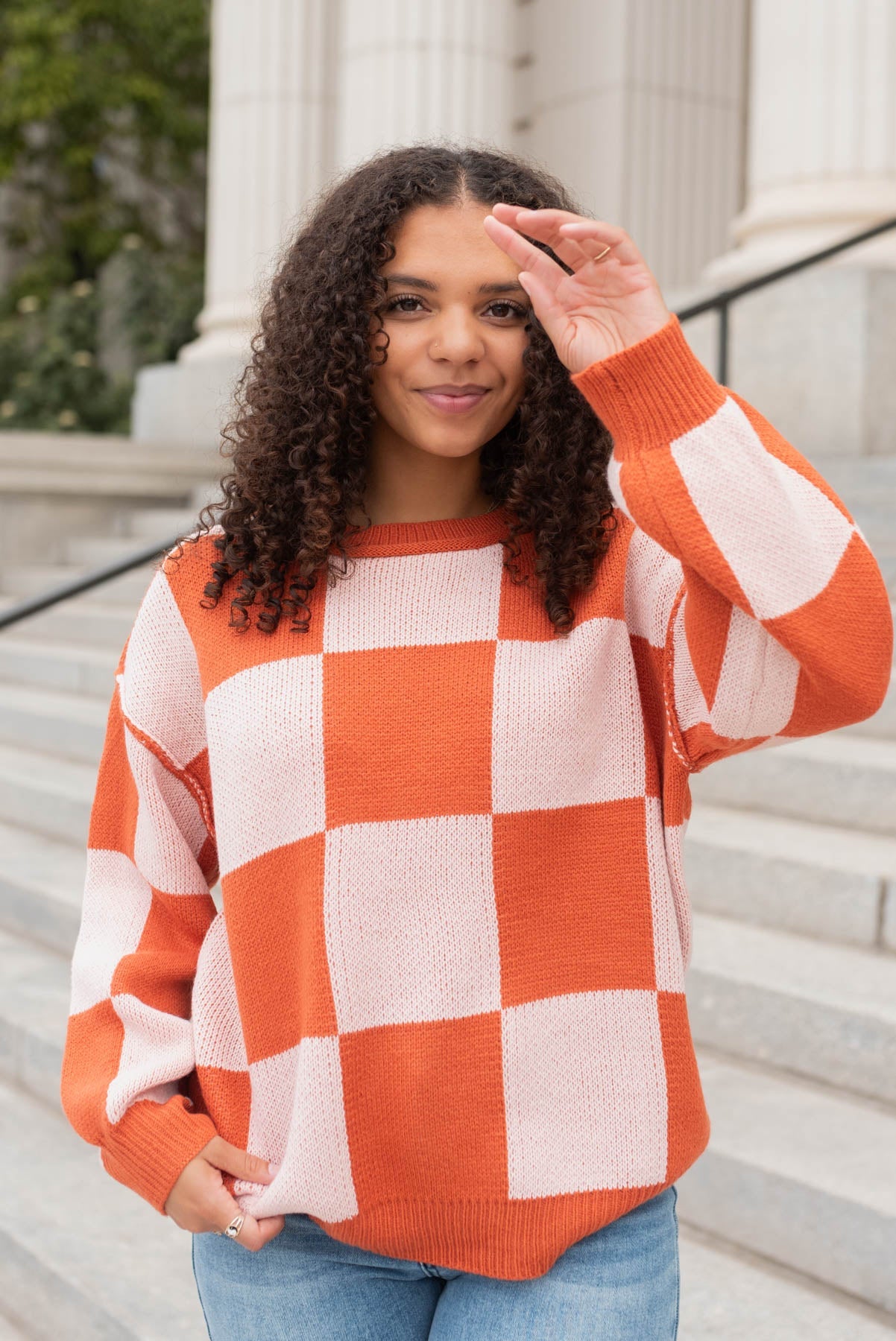 Calista Rust Checker Sweater