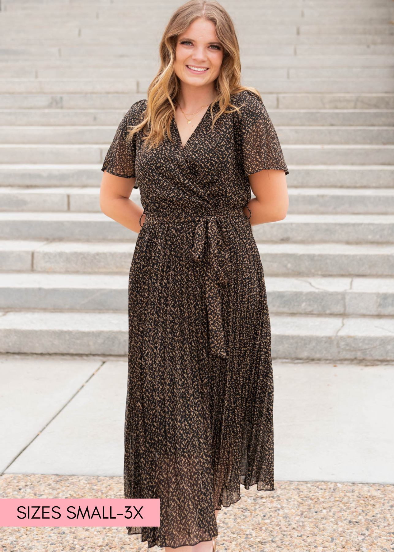 Carmela Black Pleated Dress