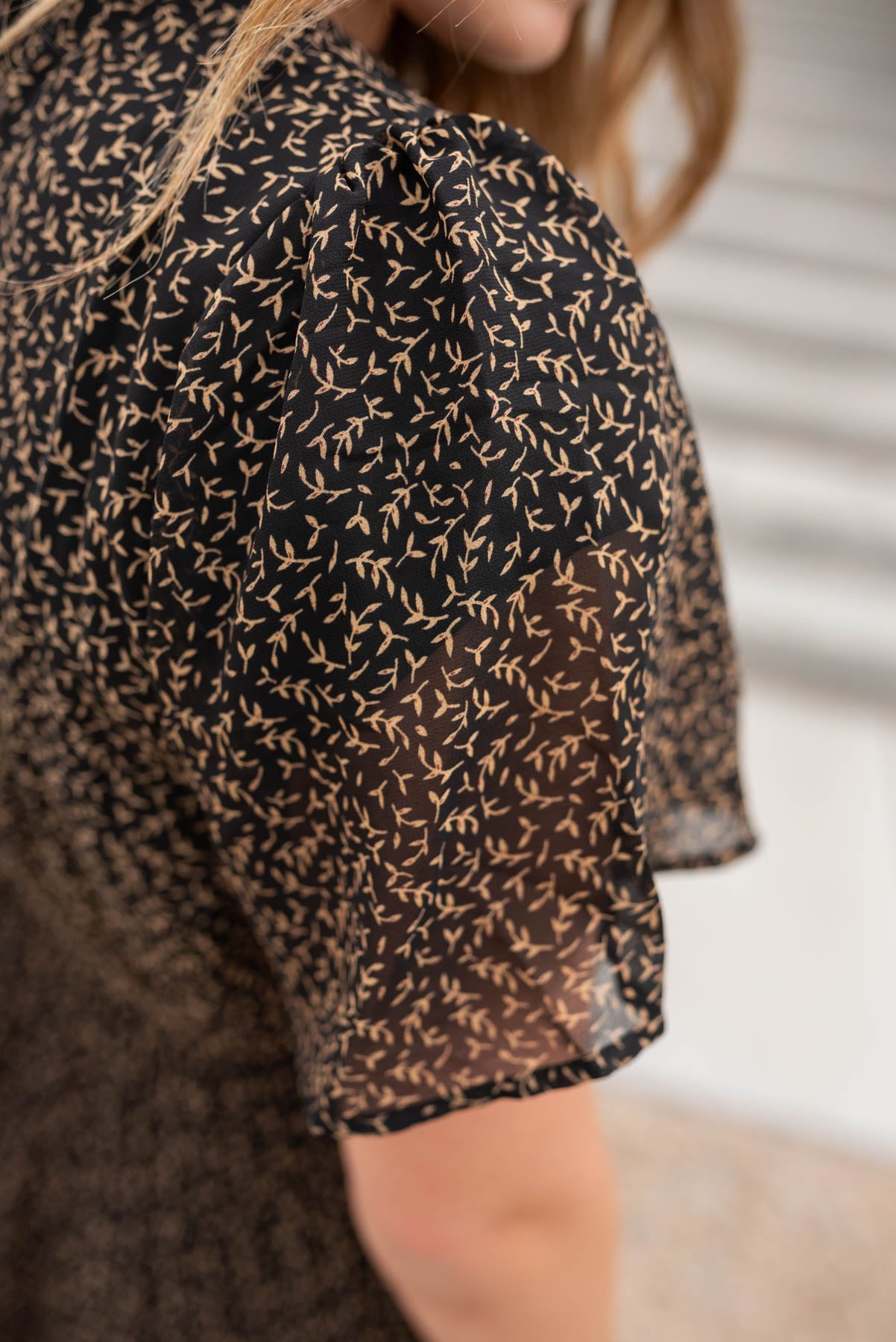 - Black fabric with golden vine print all over