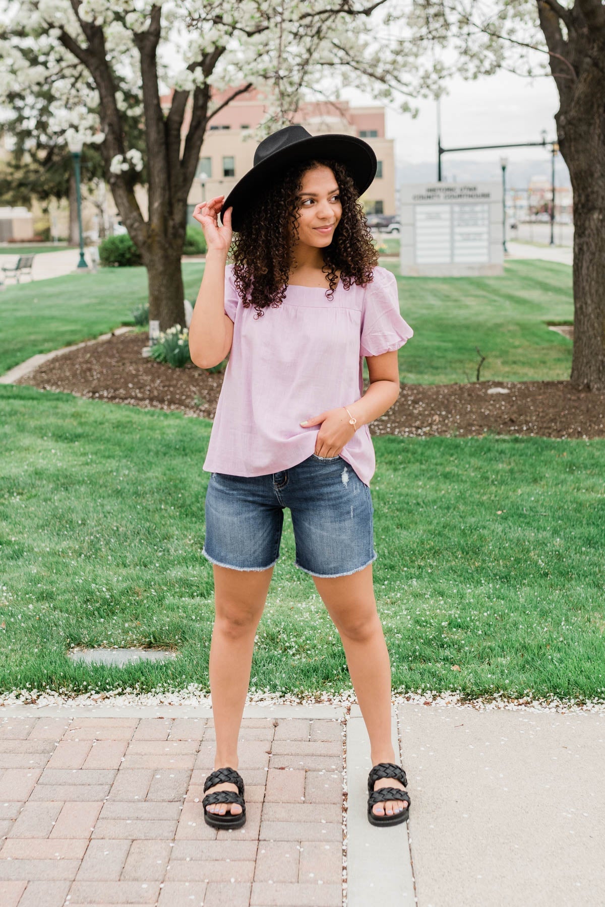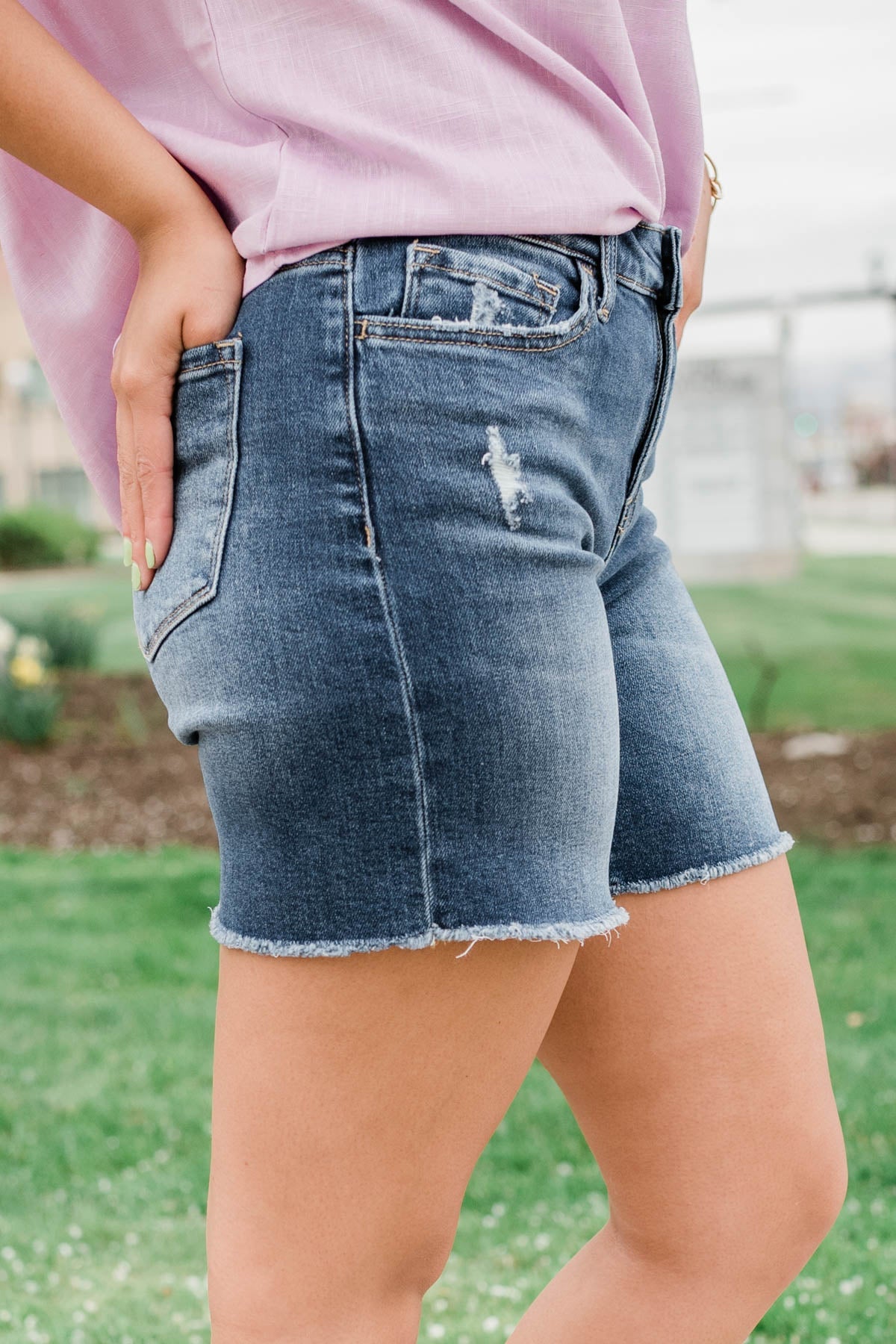 The Cheerful Mid Rise Distressed Midi Shorts are as comfy and cool as can be. You can never go wrong with a medium wash denim, and these take the cake! A very soft, stretchy, and moveable denim. Complete with functioning pockets, belt loops, front button, and cute pops of distressing. These will be a wardrobe staple for the season.