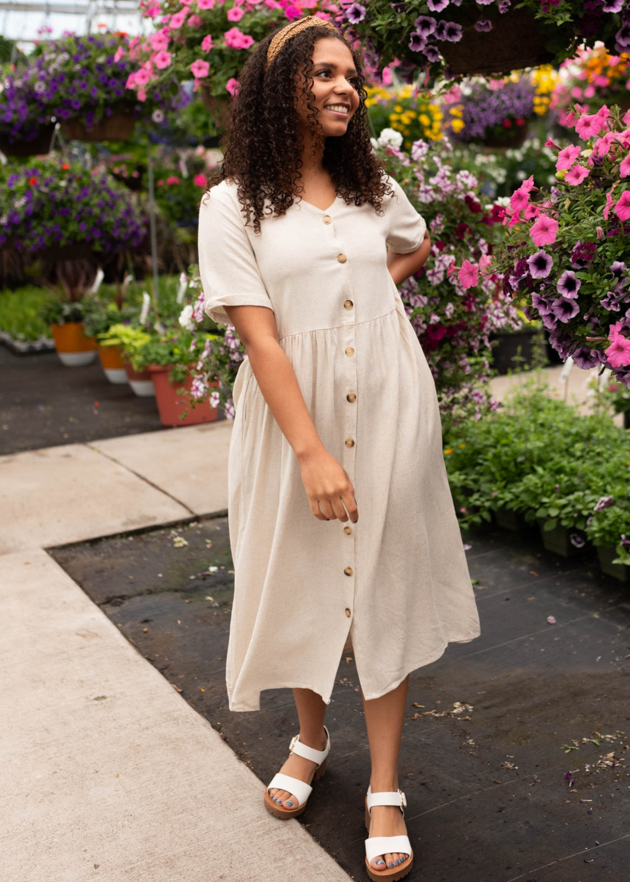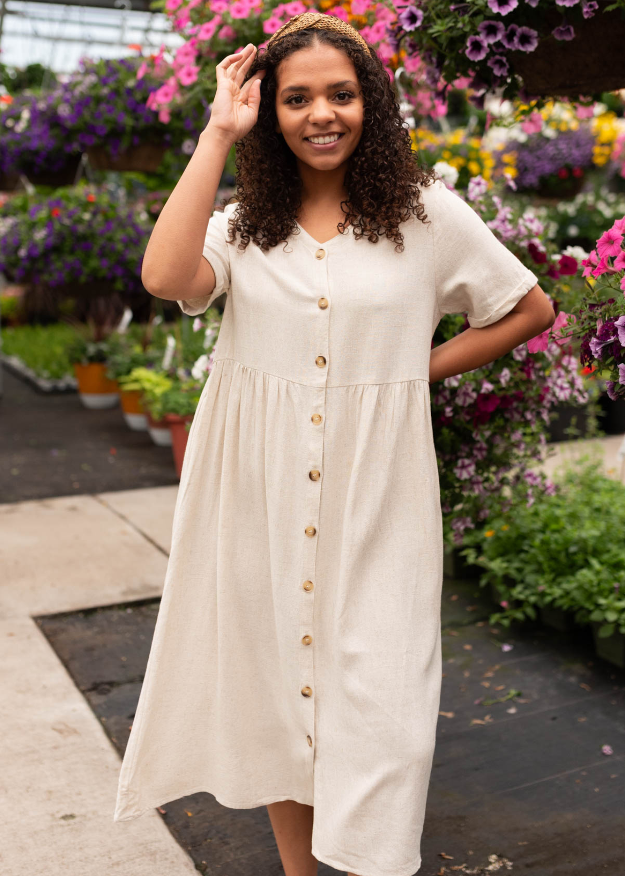 Chrissy Oatmeal Button Down Dress
