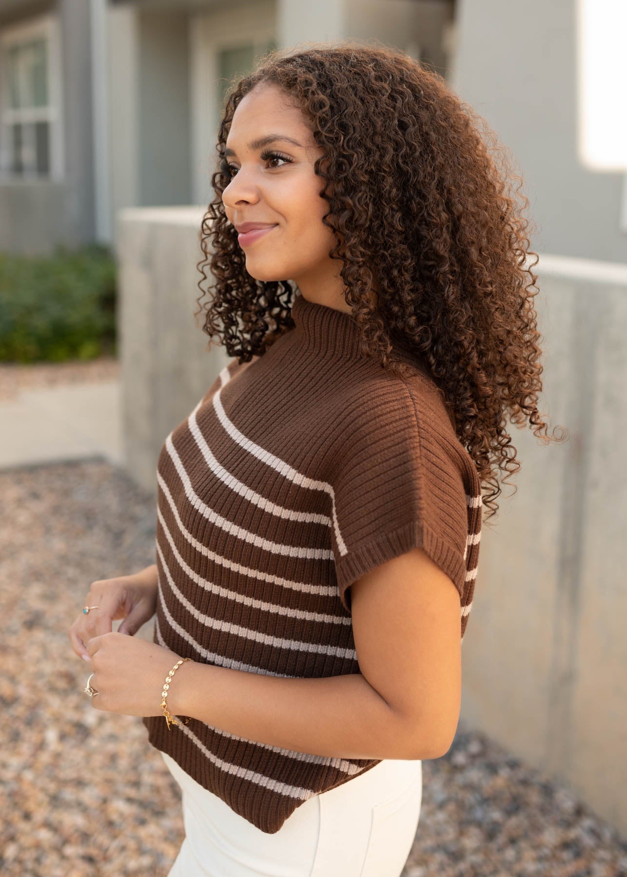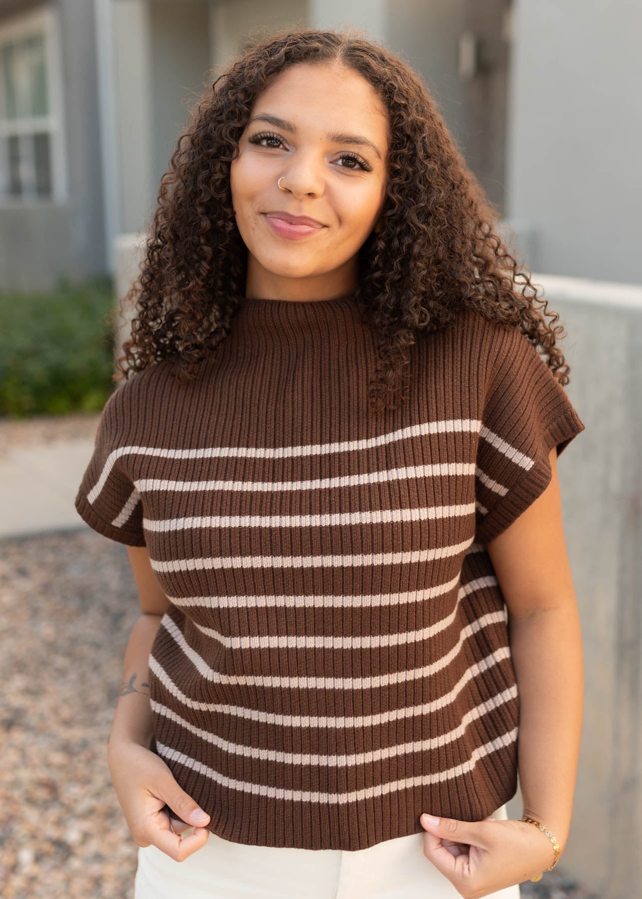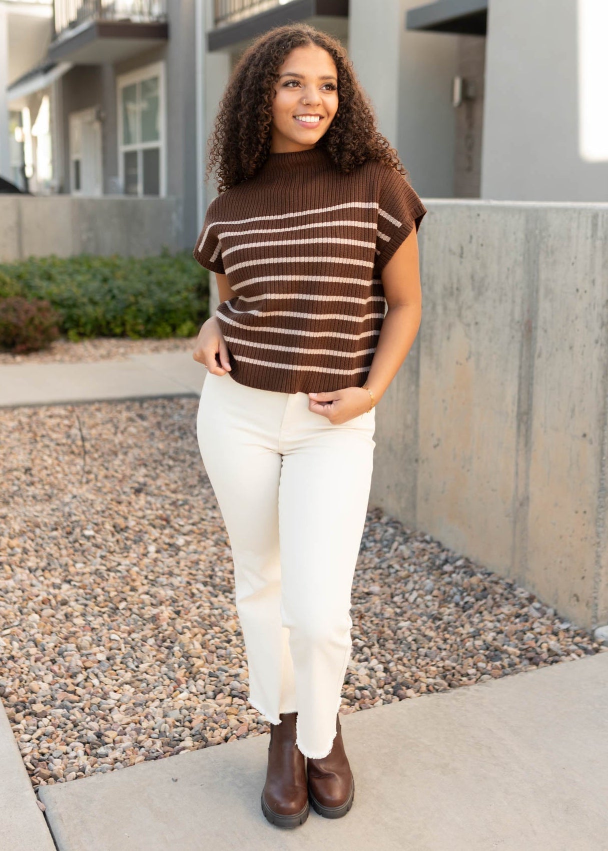 The Claire Hazelnut Sweater is a warm hug in clothing form—soft, stretchy, and oh-so-easy to style. Its ribbed texture and timeless striped design make it the kind of piece you’ll reach for again and again.