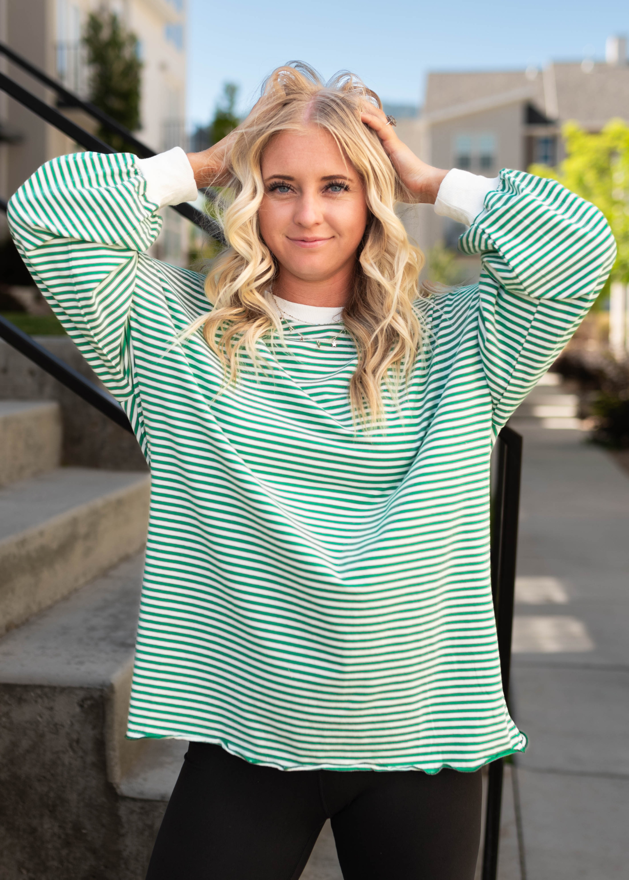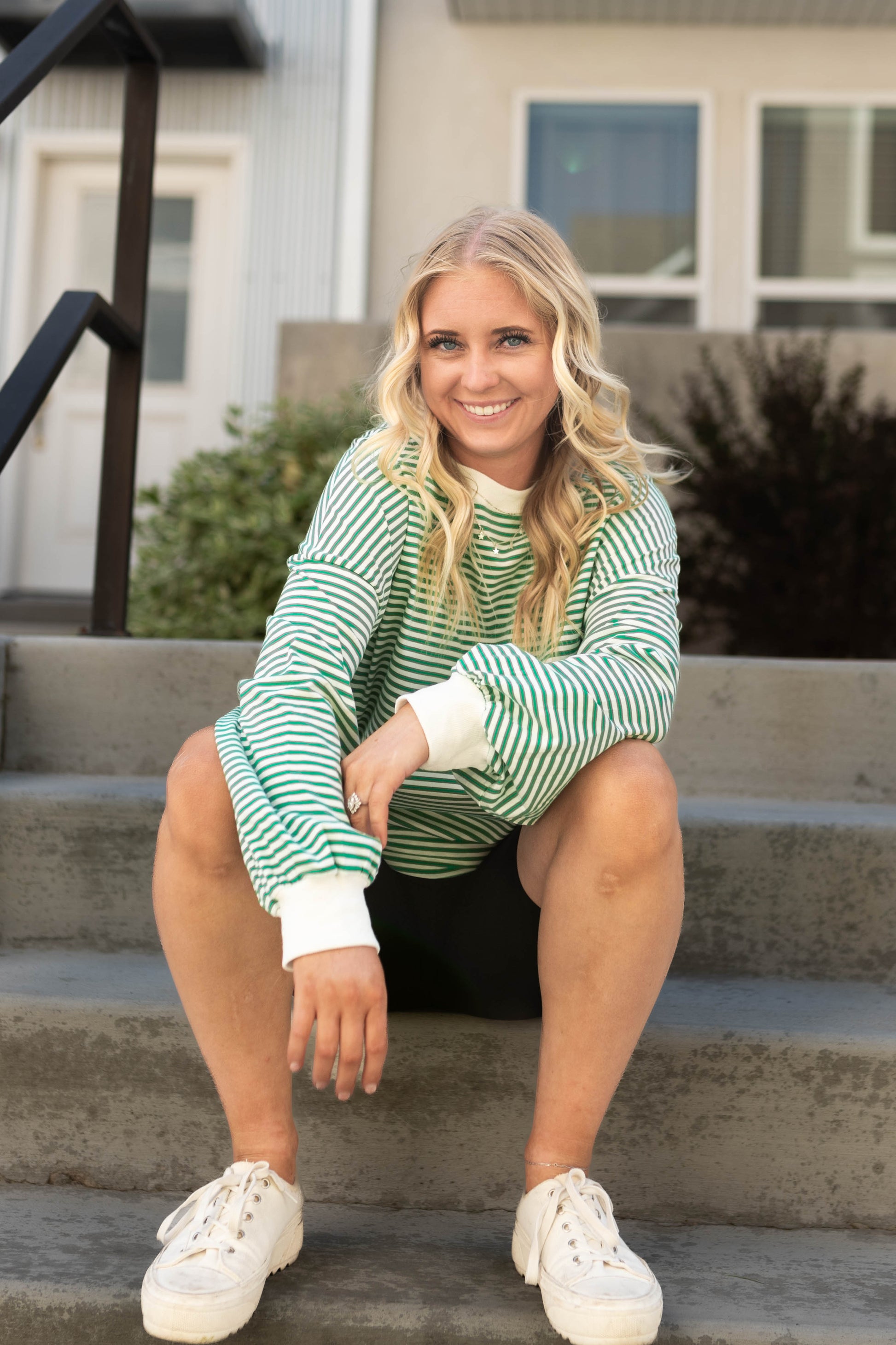 - Bright green & white stripe print