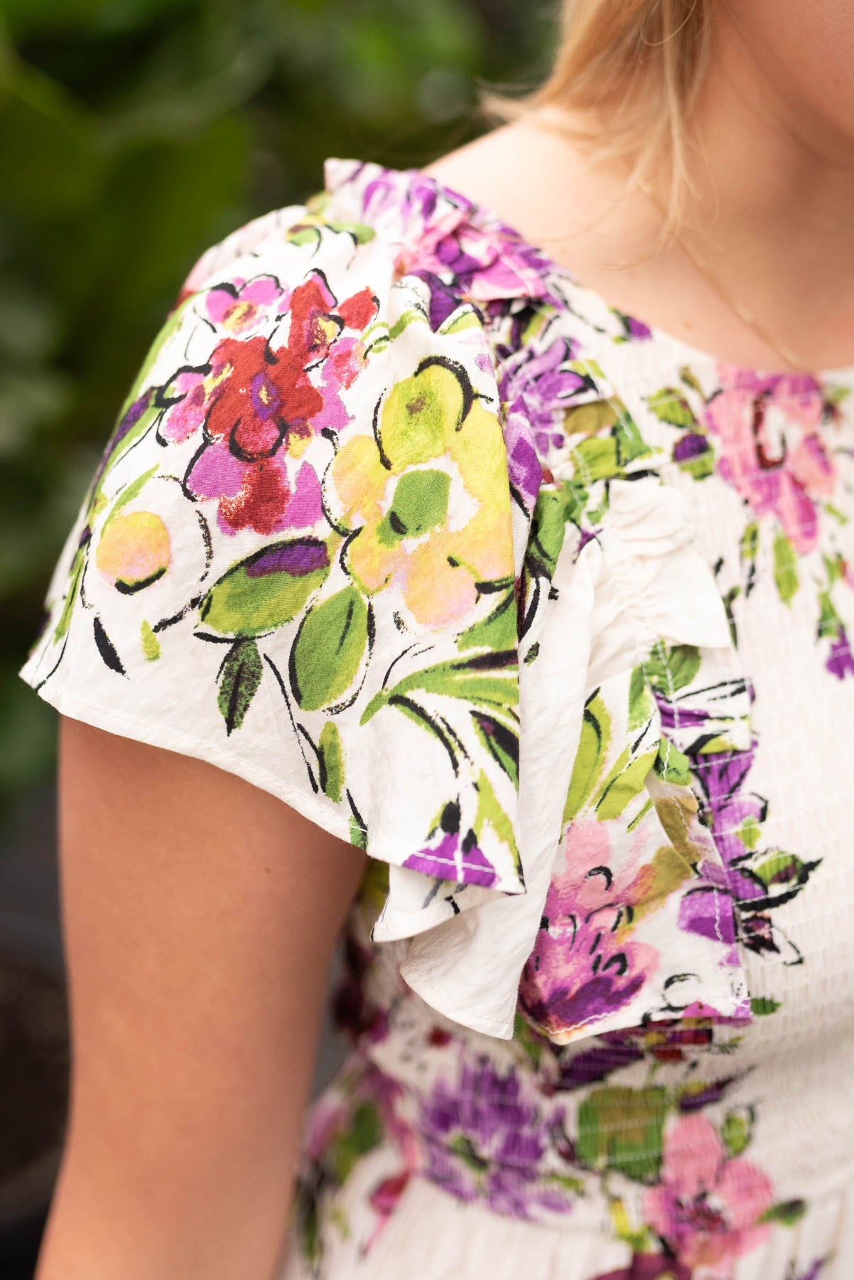 - Ruffle sleeve detail with extra seams along the shoulder for flair
