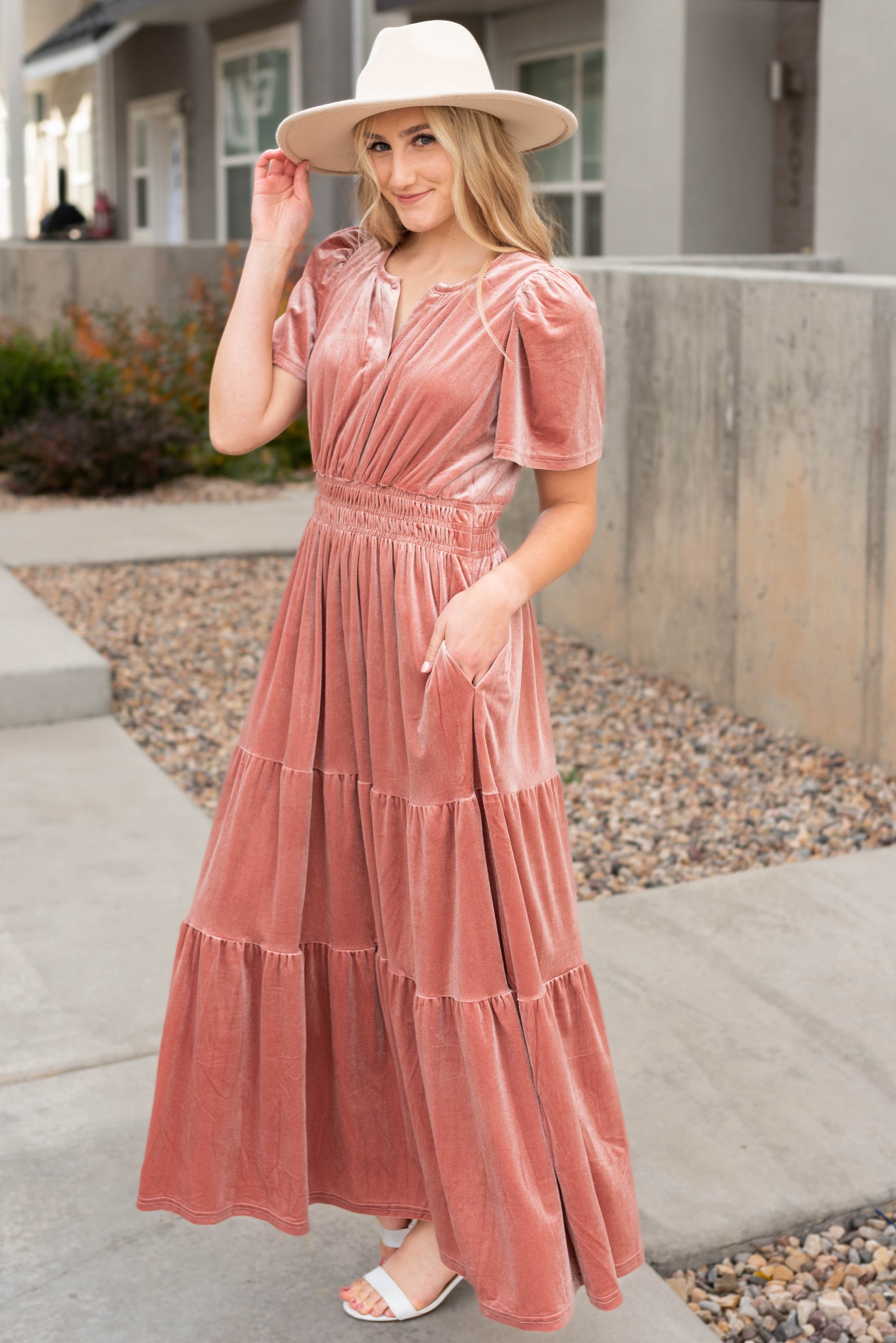 - Stretchy elastic waistband, pleated sleeves, and a flowy tiered skirt