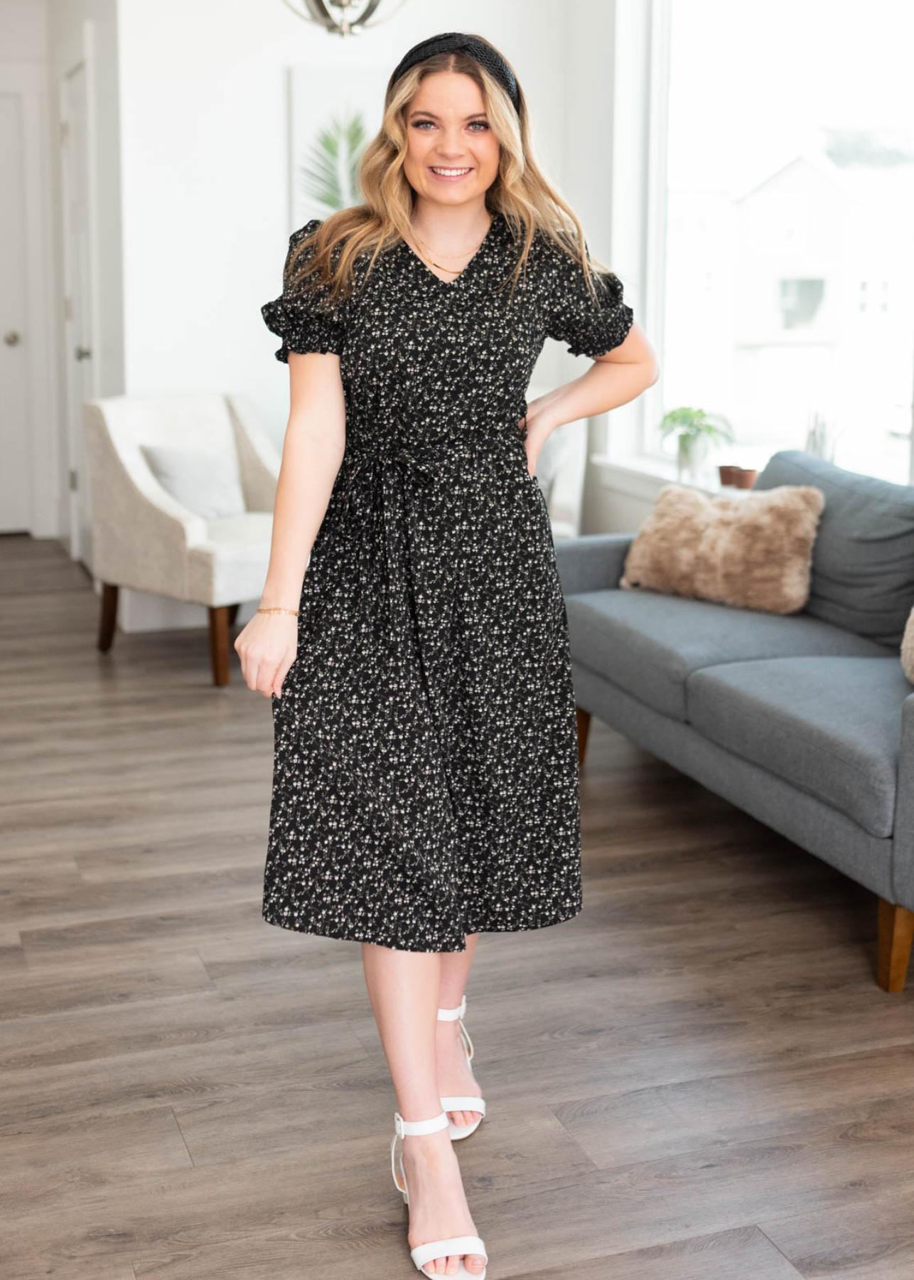 - Slight puff sleeve and subtle v-neck for flattering shape