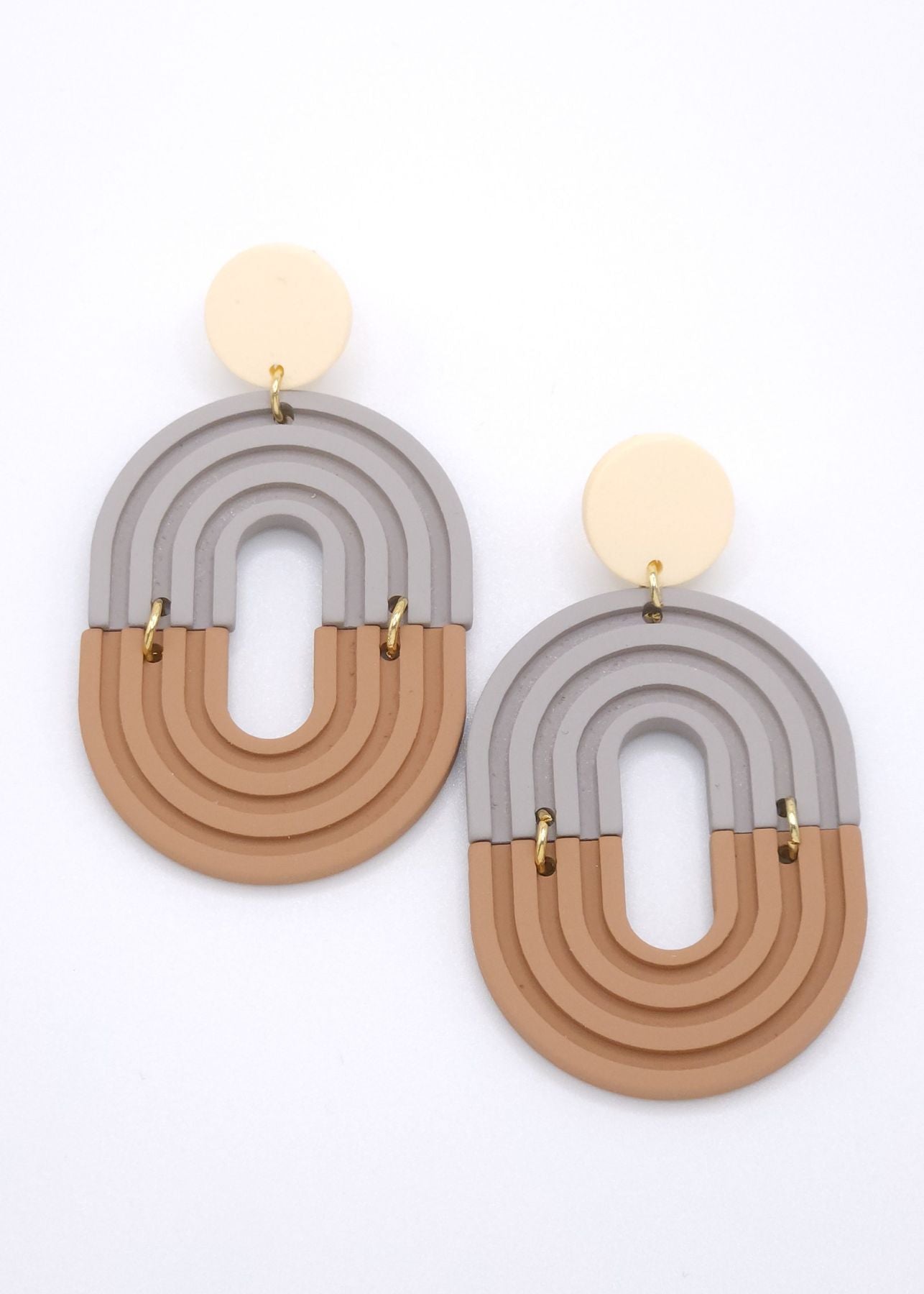 Duo color linked arches drop earrings. Made of acrylic with color coatings. Very light weight.