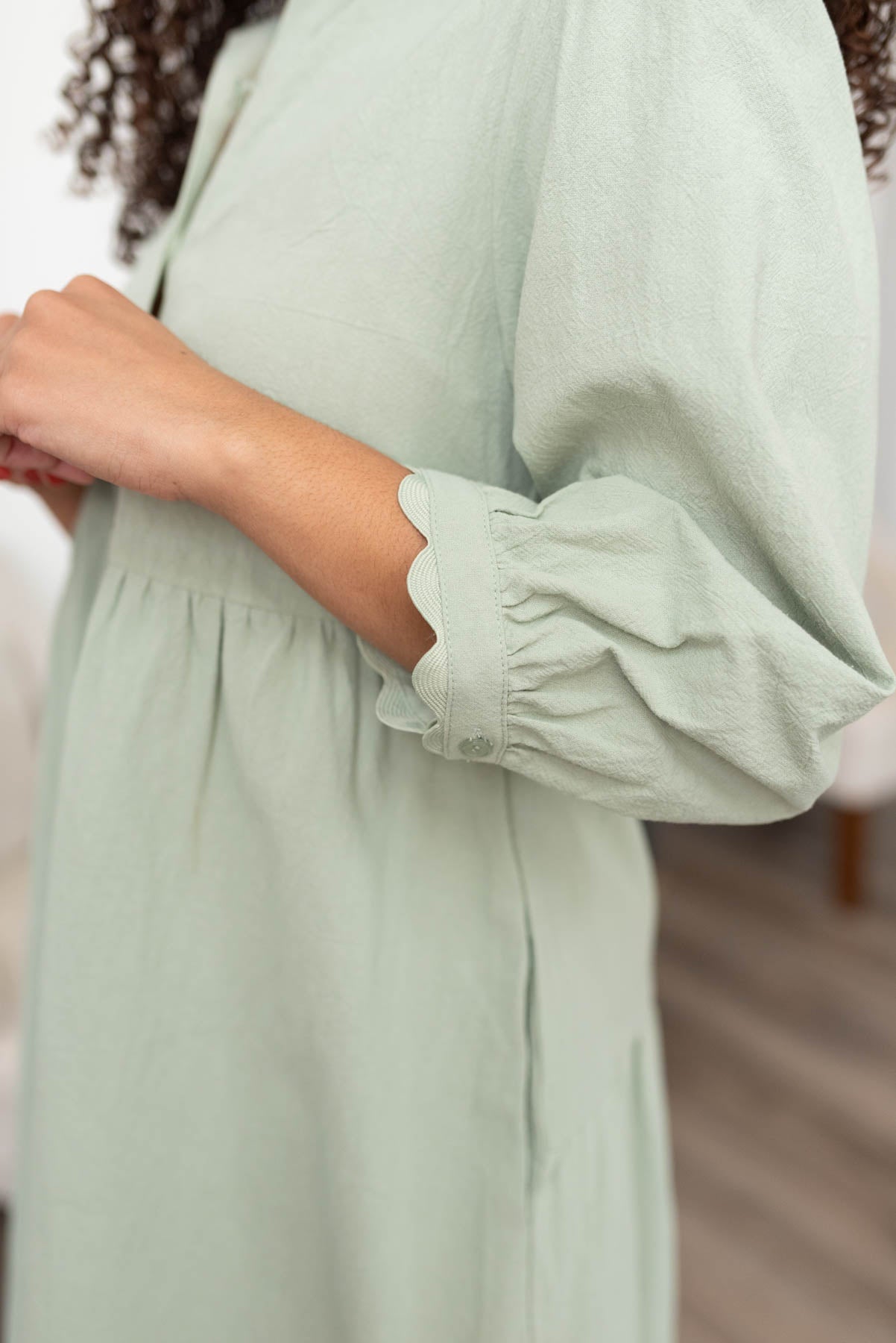 - Cute scalloped trim along the sleeves for an extra feminine touch
