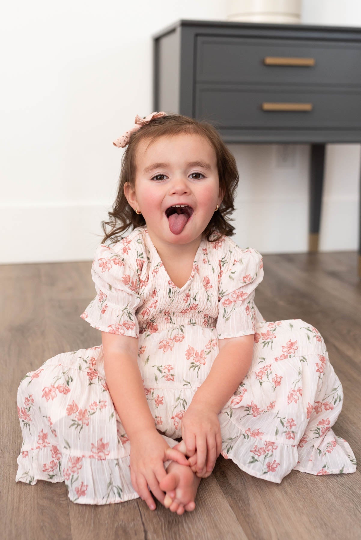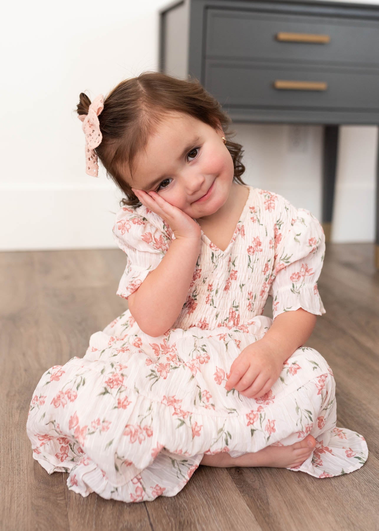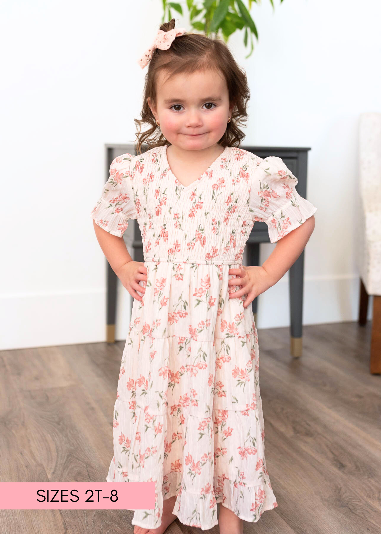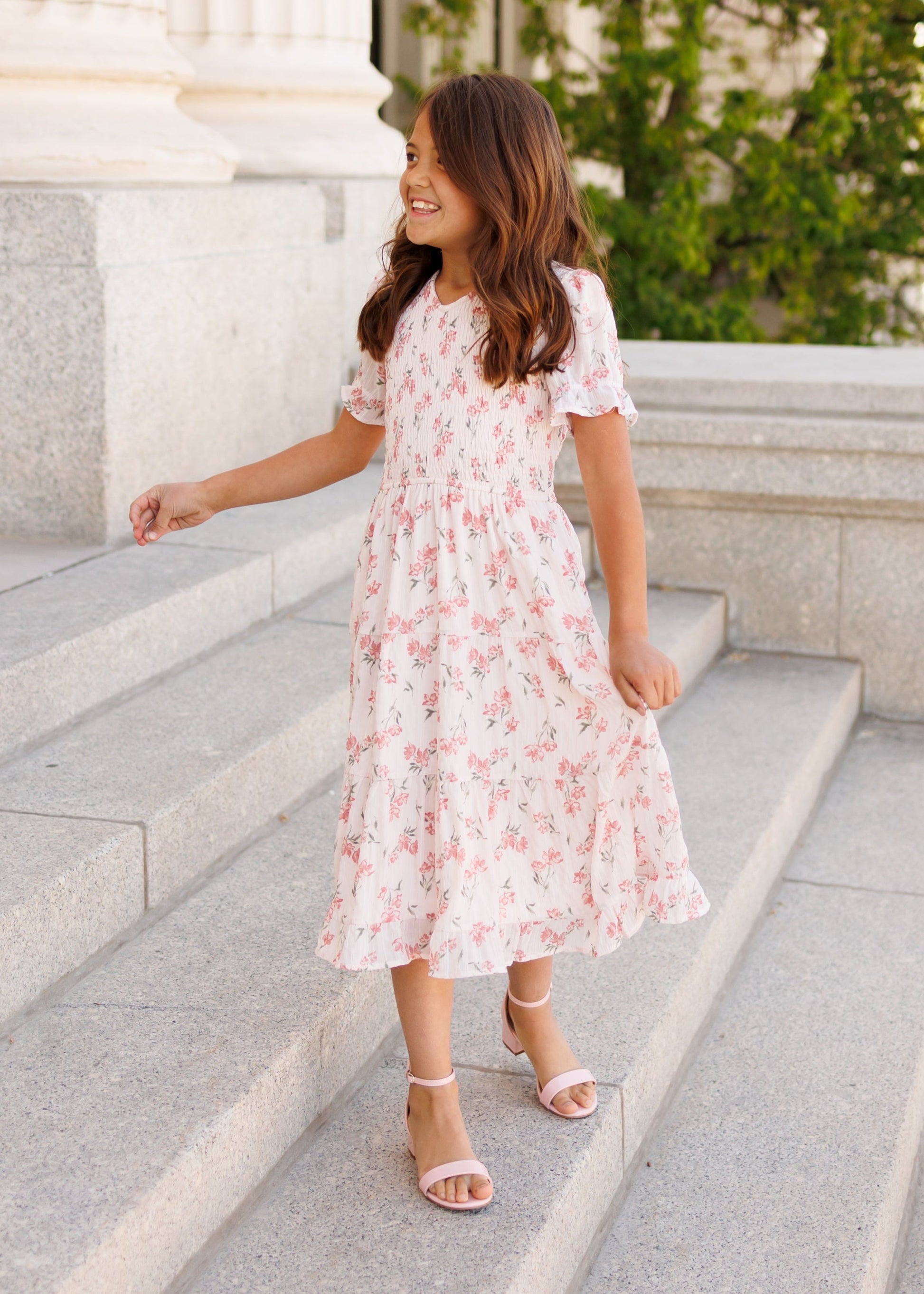 Emmie Pink Floral Tiered Little Girl Dress