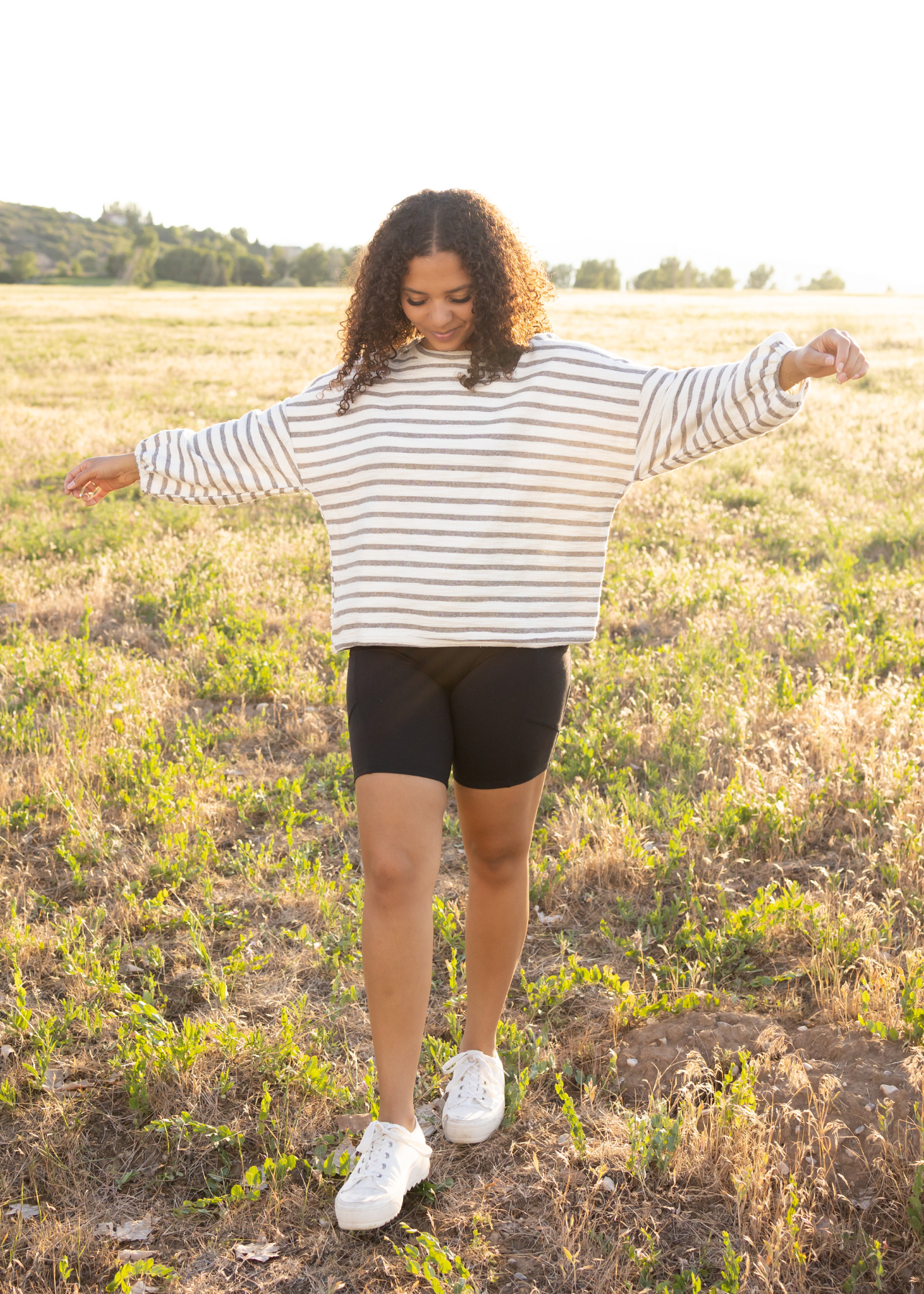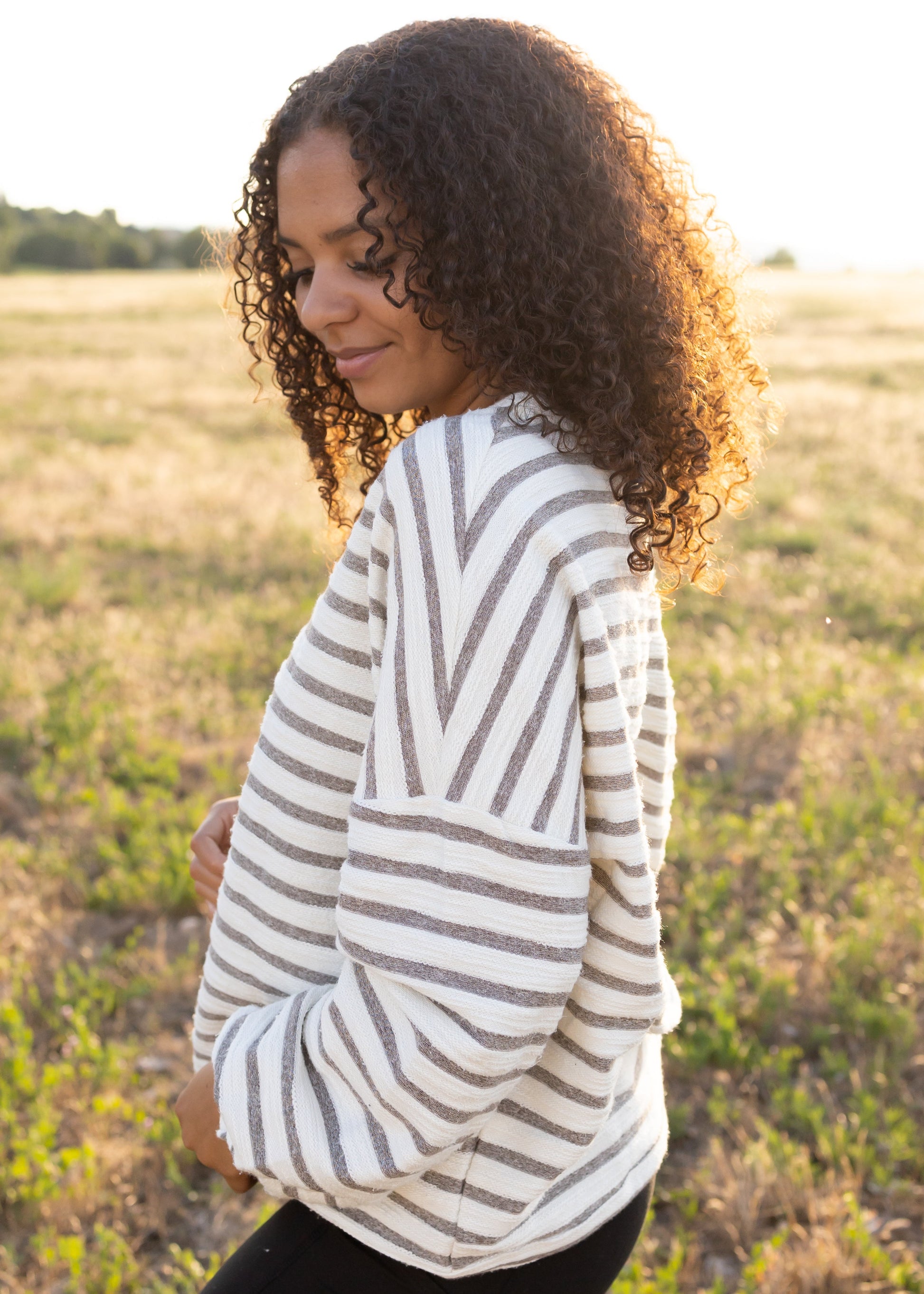 - Neutral heather grey & white stripe print