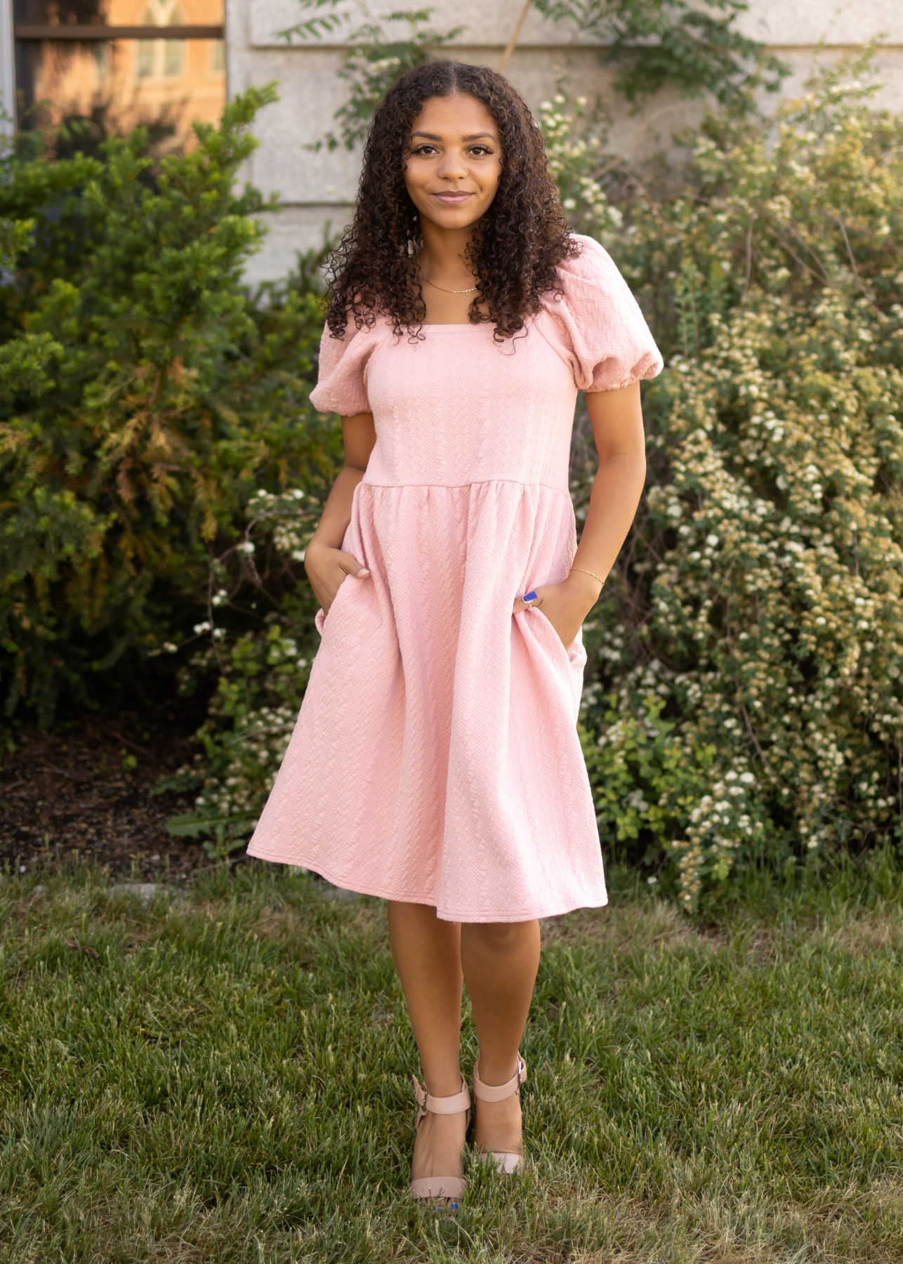 - Soft dusty pink + knit textured fabric