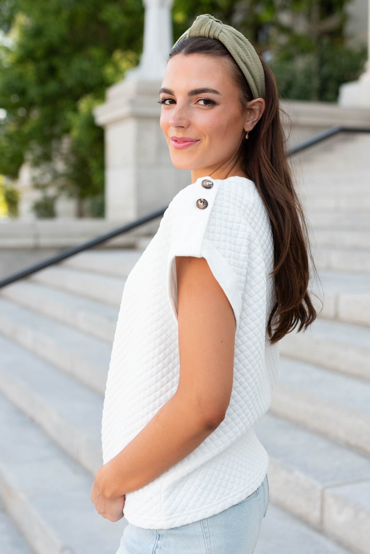 - Functioning buttons on the shoulders that work with the straps and allow you to adjust your sleeve fit