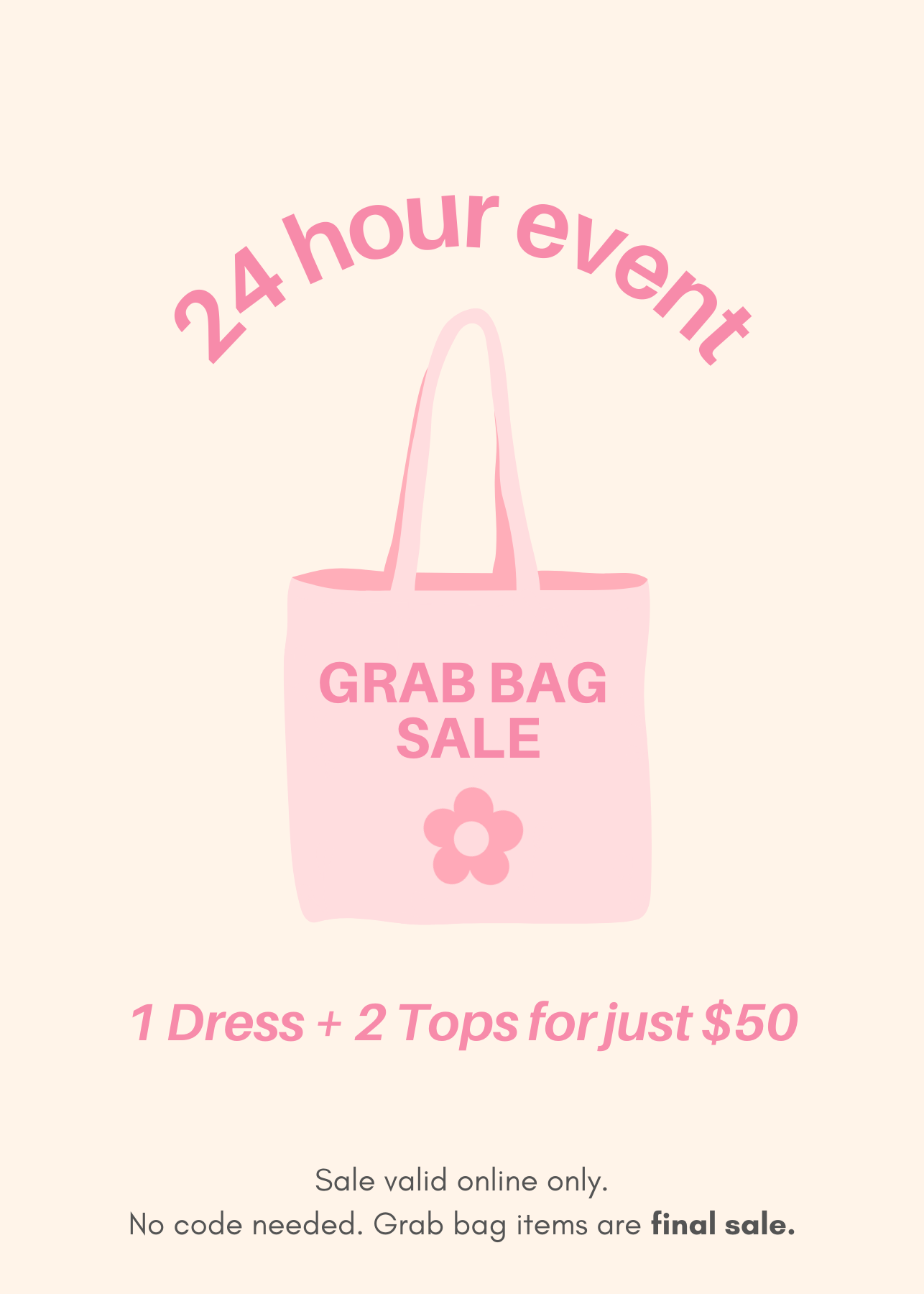 Did you hear the news? Grab bags are back! It’s time for one of our favorite events! Each bag includes one dress and 2 tops. The best part? Each bag is only $50, making it a steal of a deal!