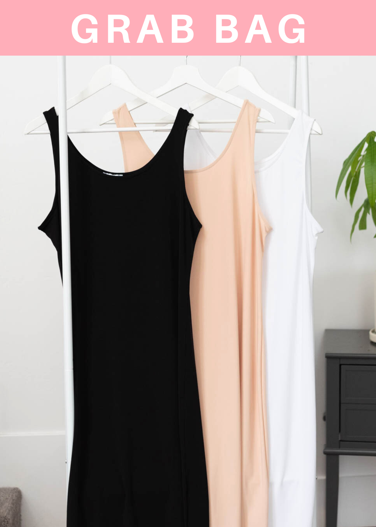 - You will receive any two slips of the following varieties: cap sleeve long, cap sleeve short, tank long, or tank short in black, white, or nude.