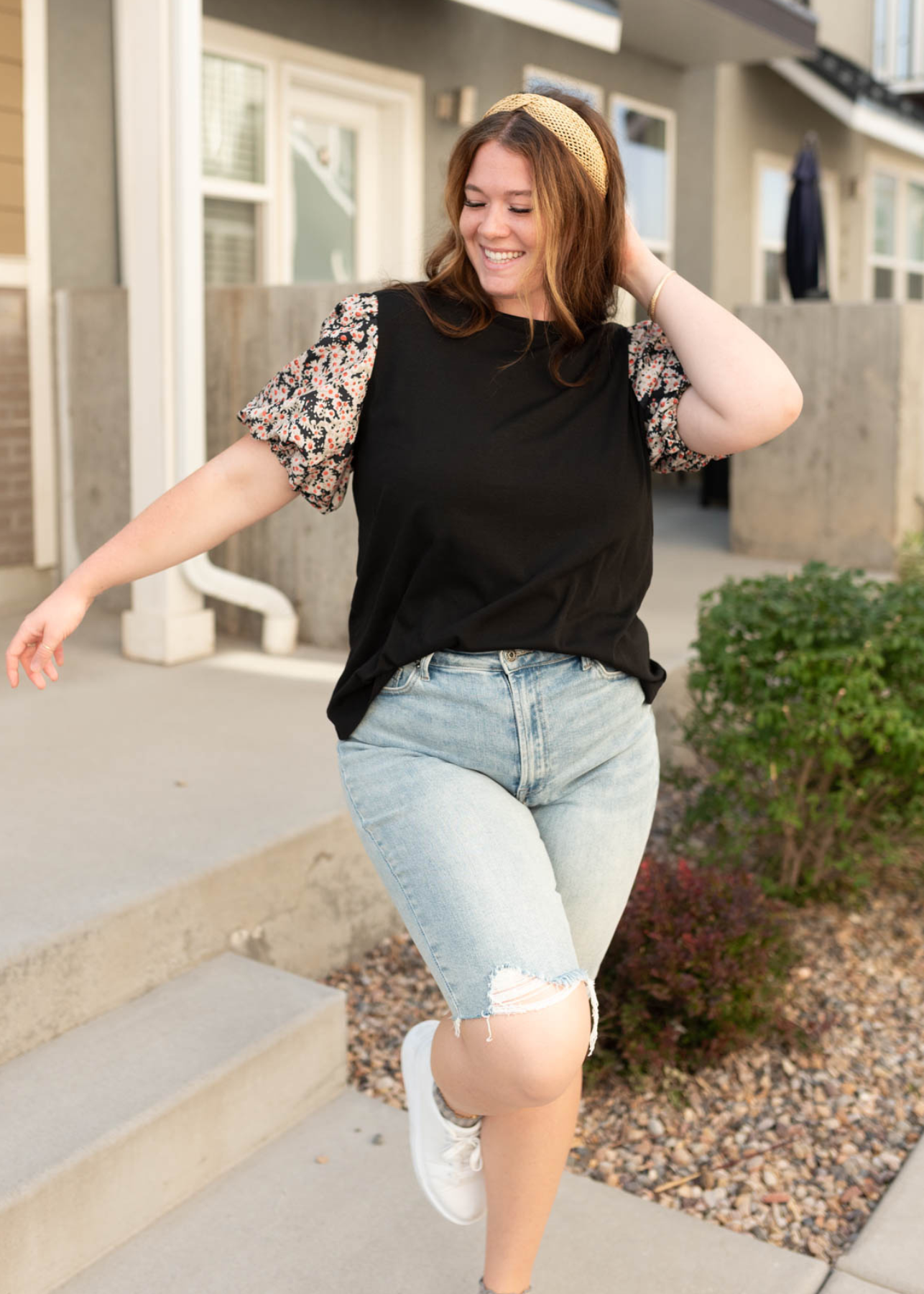 Haisley Black Daisy Print Top