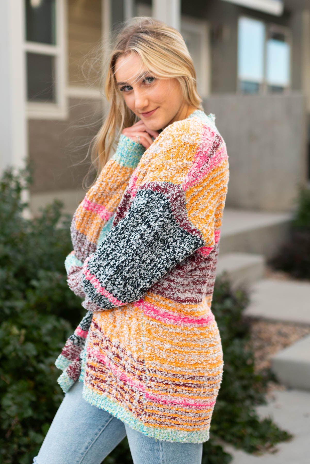 - Multi color textured knit